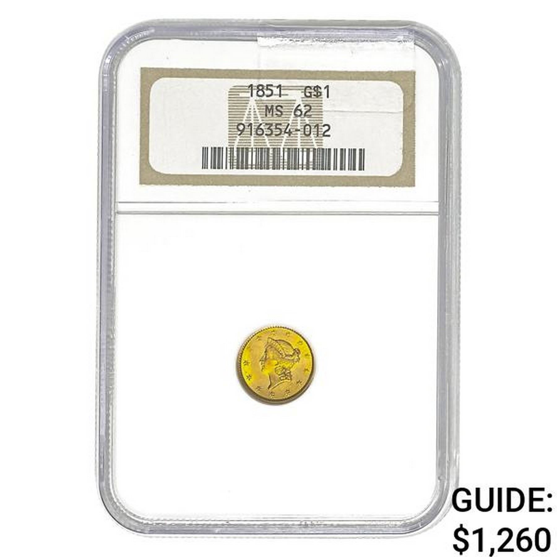 1851 Rare Gold Dollar NGC MS62