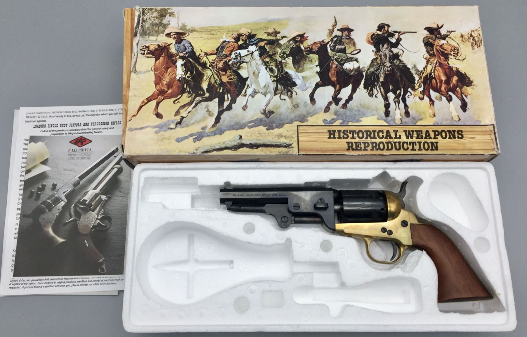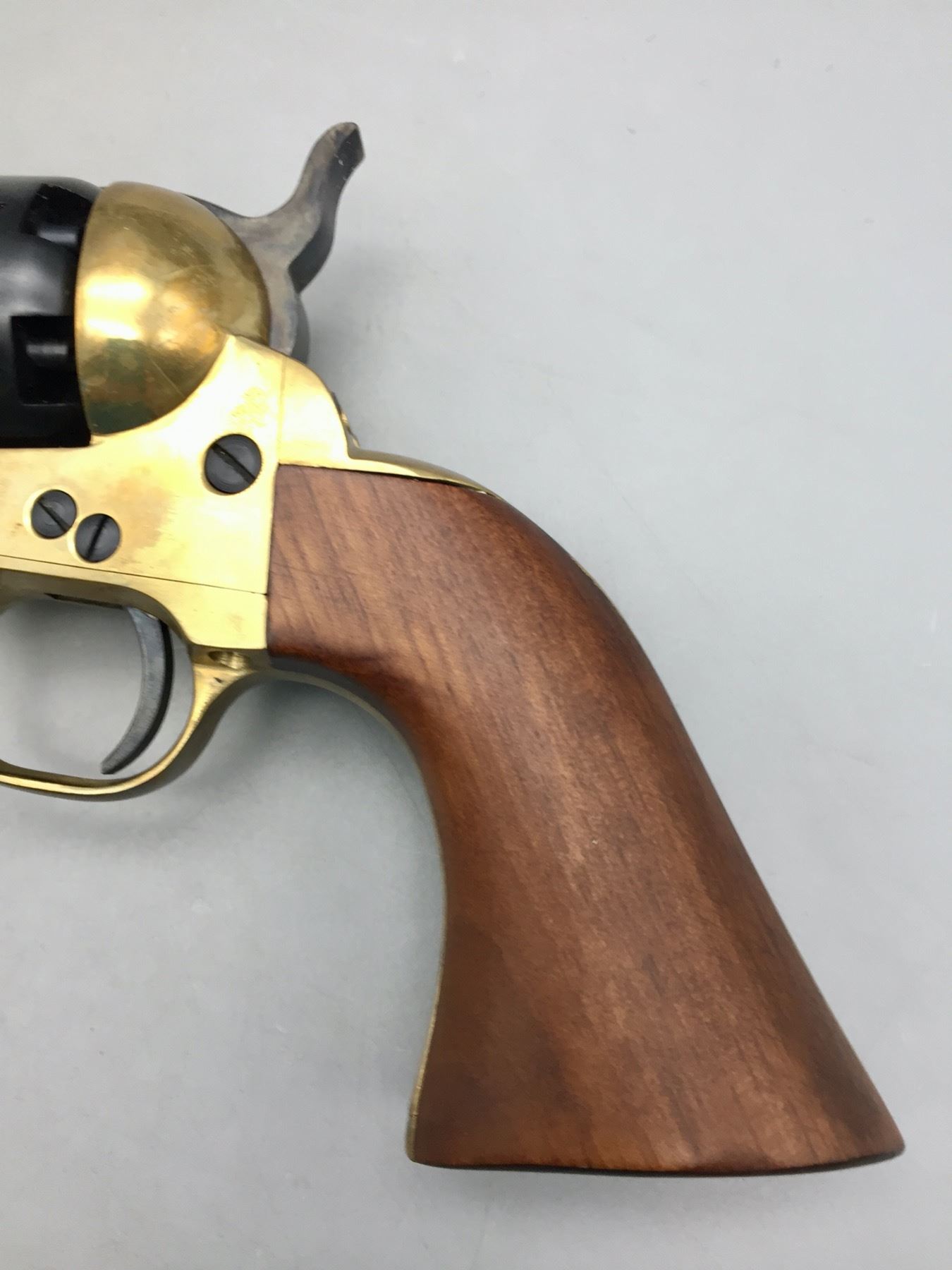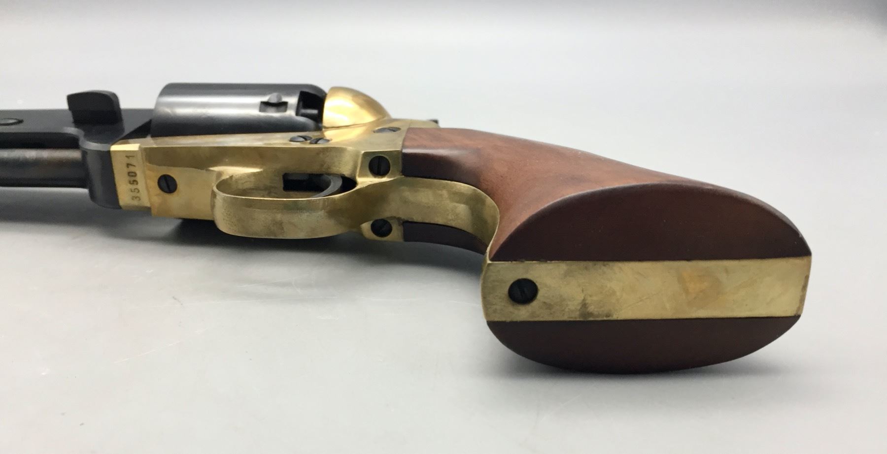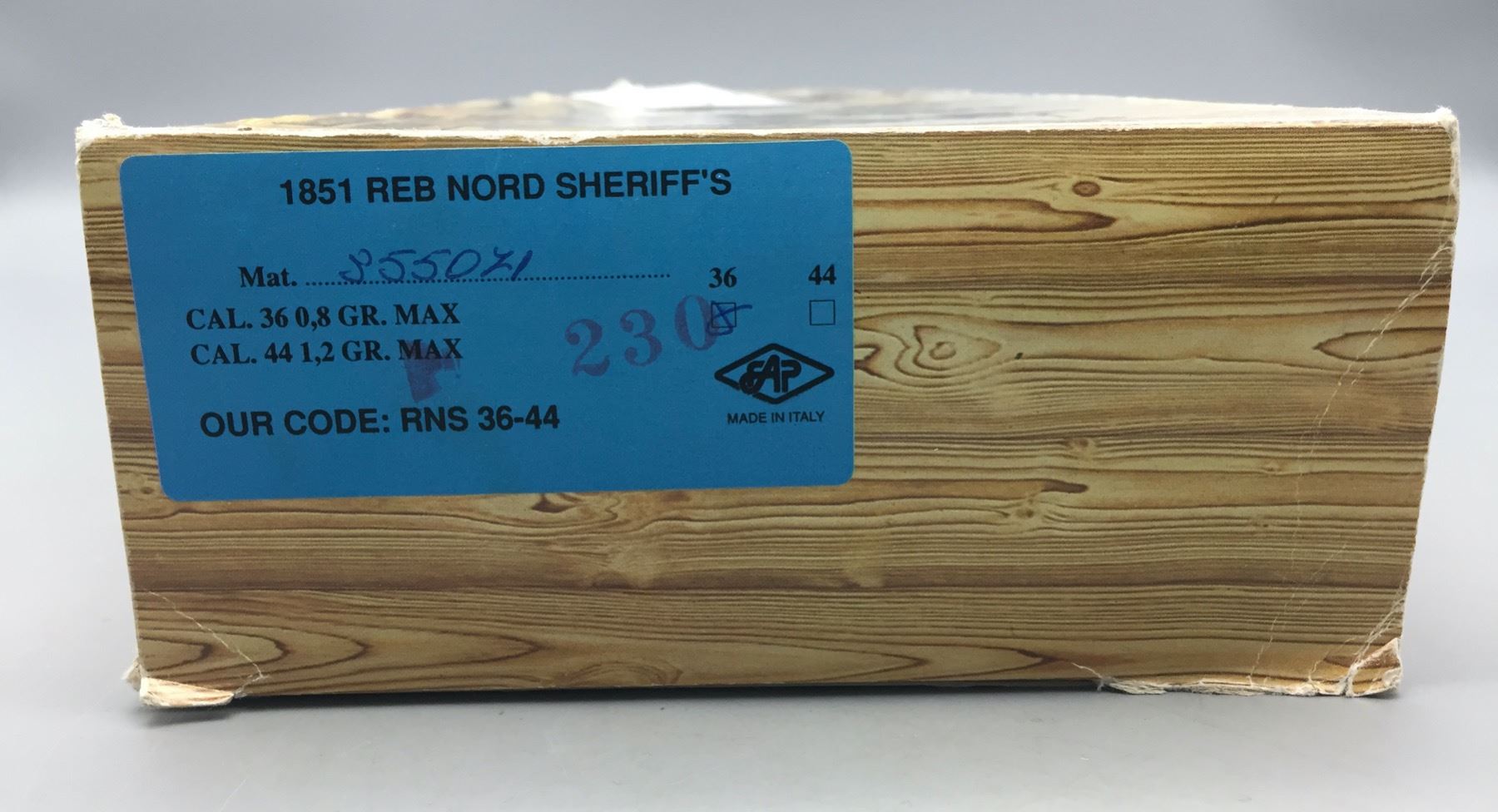 Description: Offered for sale in this lot is a replica 1851 Reb Nord Sheriffs .36 caliber revolver with maple grips in its original packaging. Appears to be in unfired condition. Maker: F.IIL PIETTA Approx. Age: 2000. Serial No. 355071. Size: Barrel measures 5†with an overall length of 11-1/2â€. Condition: Good. Please look closely at the pictures - they are an important part of our description. Shipping: There will be a $15 handling / packaging fee for shipping this lot. The actual cost of postage will be added on top of that. *BLACK POWDER Replica firearm DOES NOT REQUIRE an FFL Transfer*