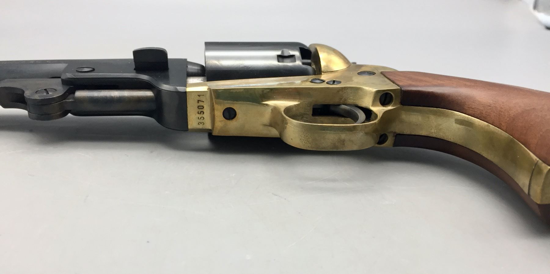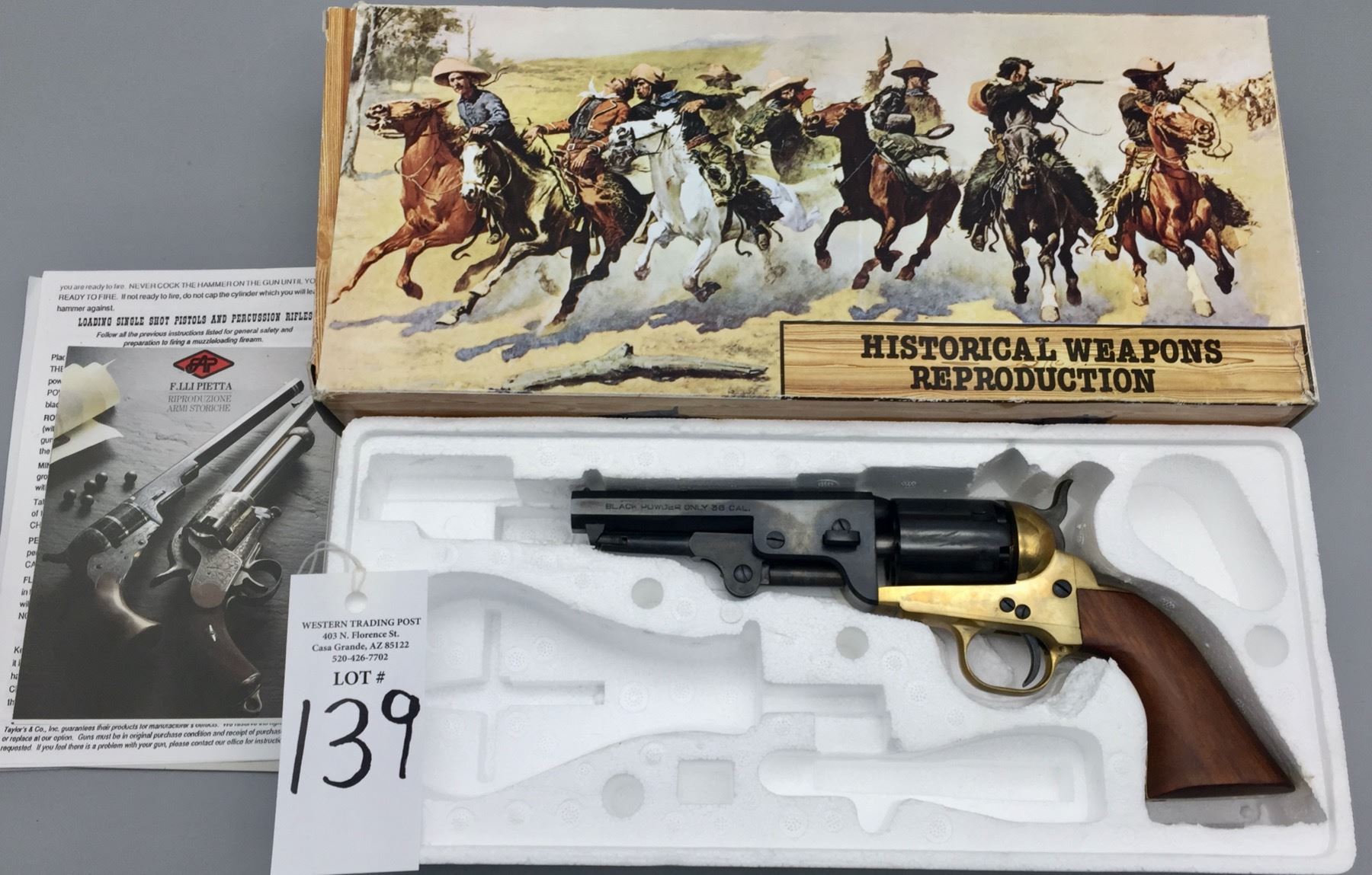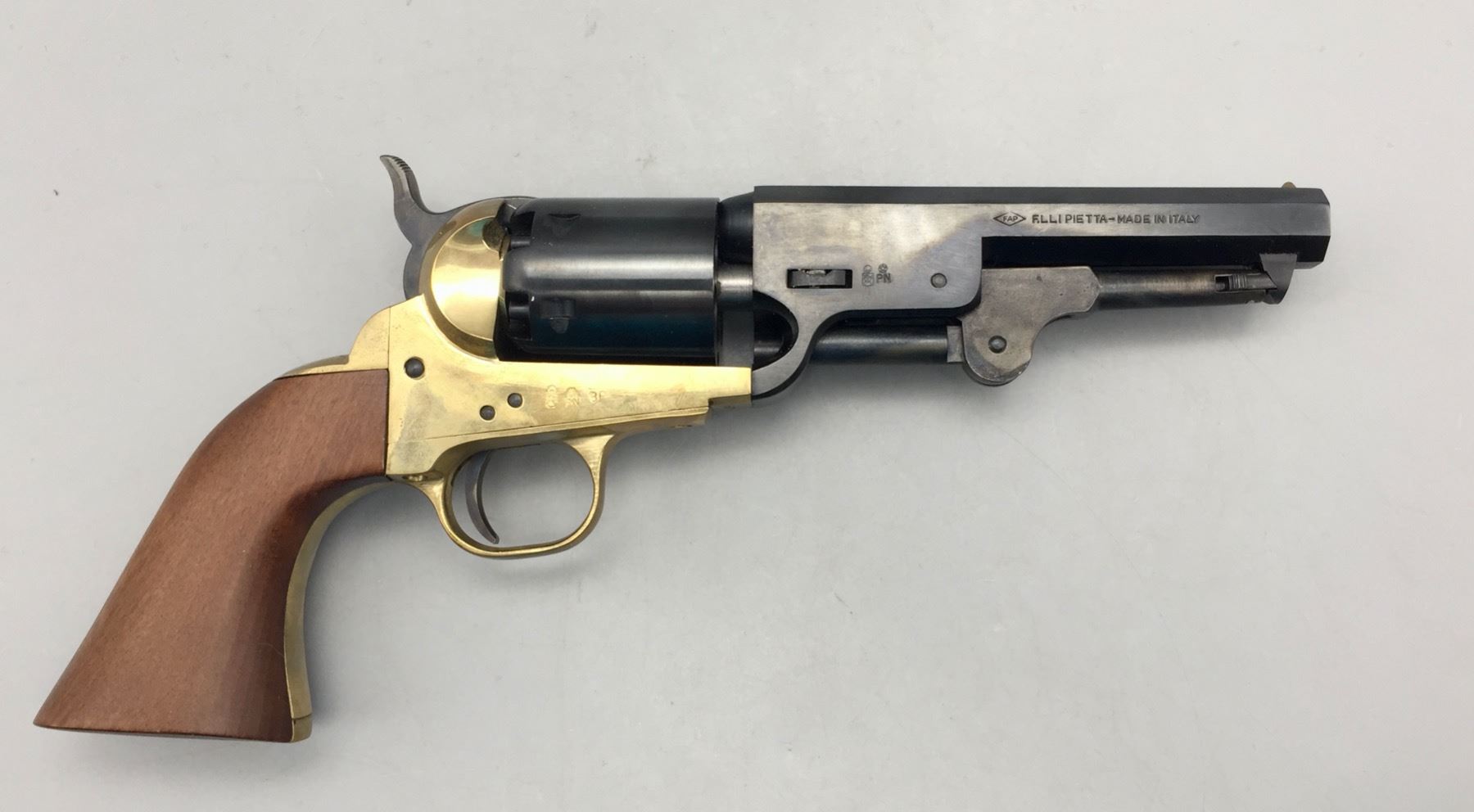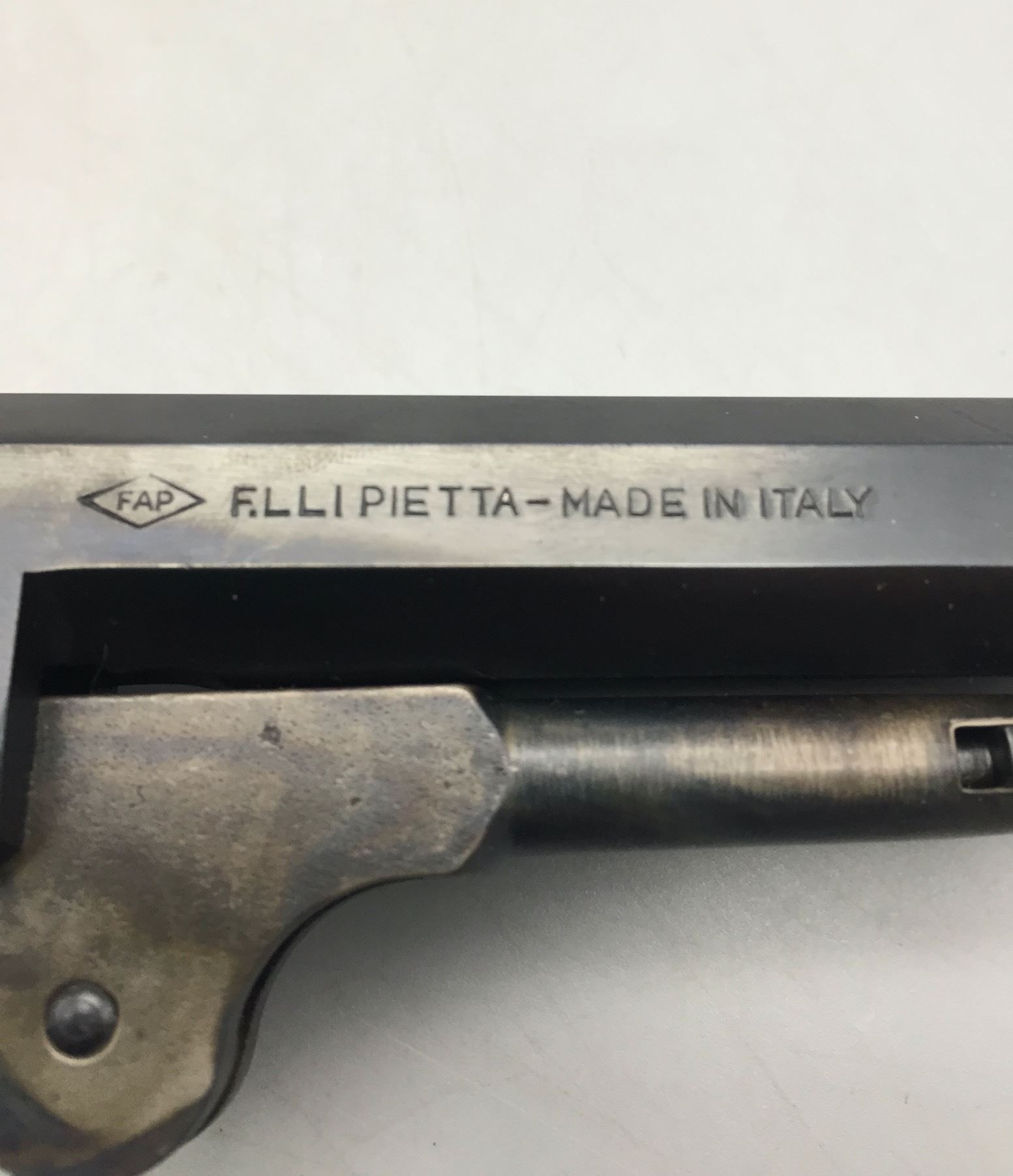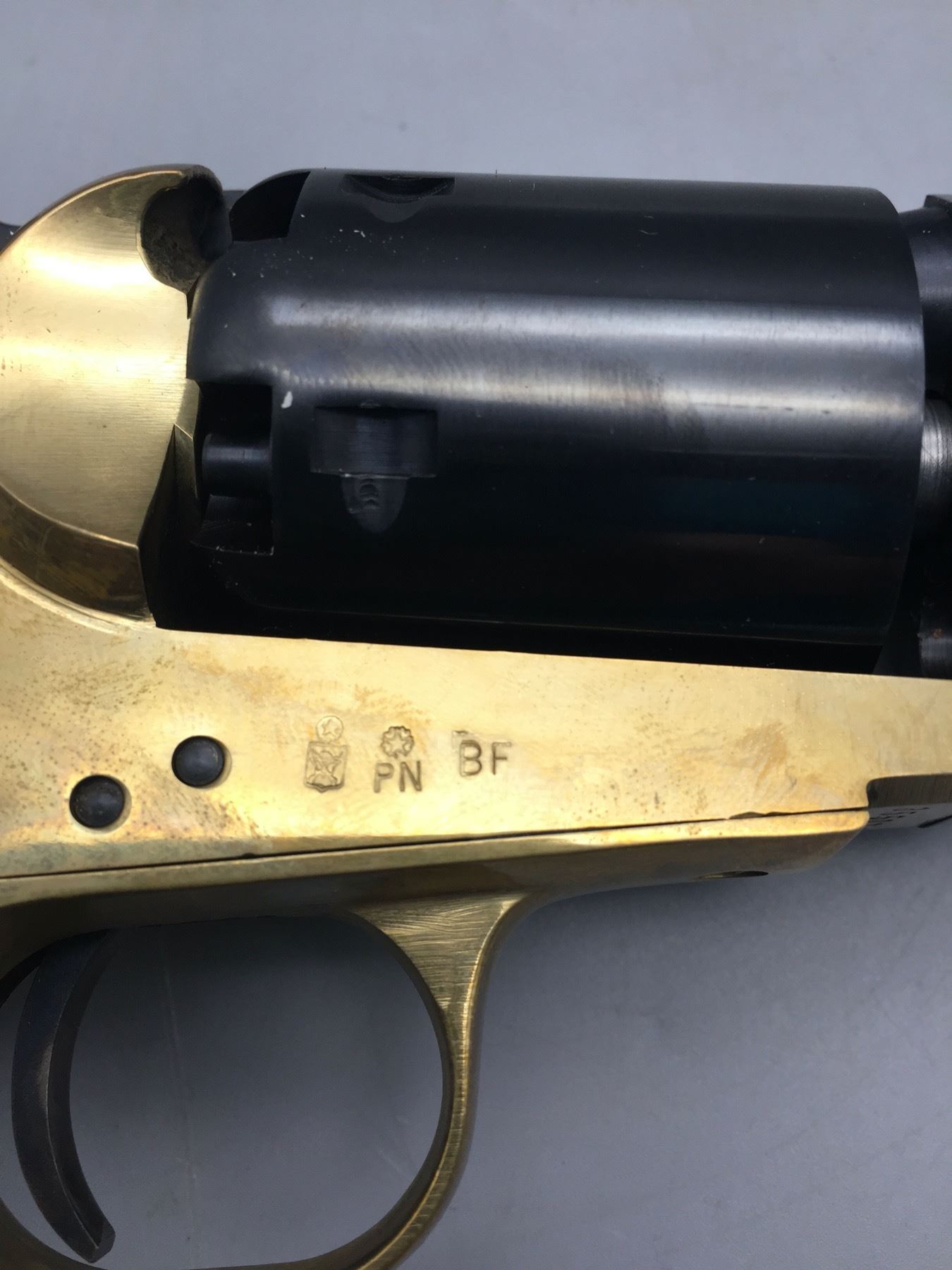 Description: Offered for sale in this lot is a replica 1851 Reb Nord Sheriffs .36 caliber revolver with maple grips in its original packaging. Appears to be in unfired condition. Maker: F.IIL PIETTA Approx. Age: 2000. Serial No. 355071. Size: Barrel measures 5†with an overall length of 11-1/2â€. Condition: Good. Please look closely at the pictures - they are an important part of our description. Shipping: There will be a $15 handling / packaging fee for shipping this lot. The actual cost of postage will be added on top of that. *BLACK POWDER Replica firearm DOES NOT REQUIRE an FFL Transfer*