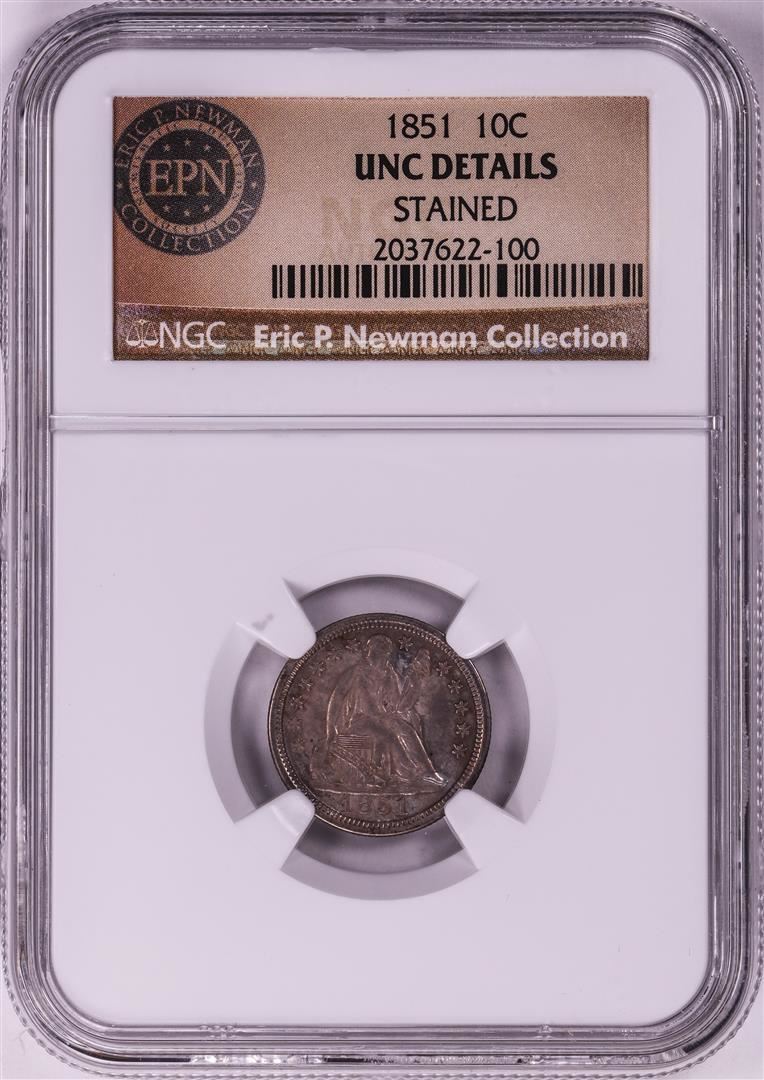 1851 Seated Liberty Dime Coin NGC Uncirculated Details Ex. Newman Collection
