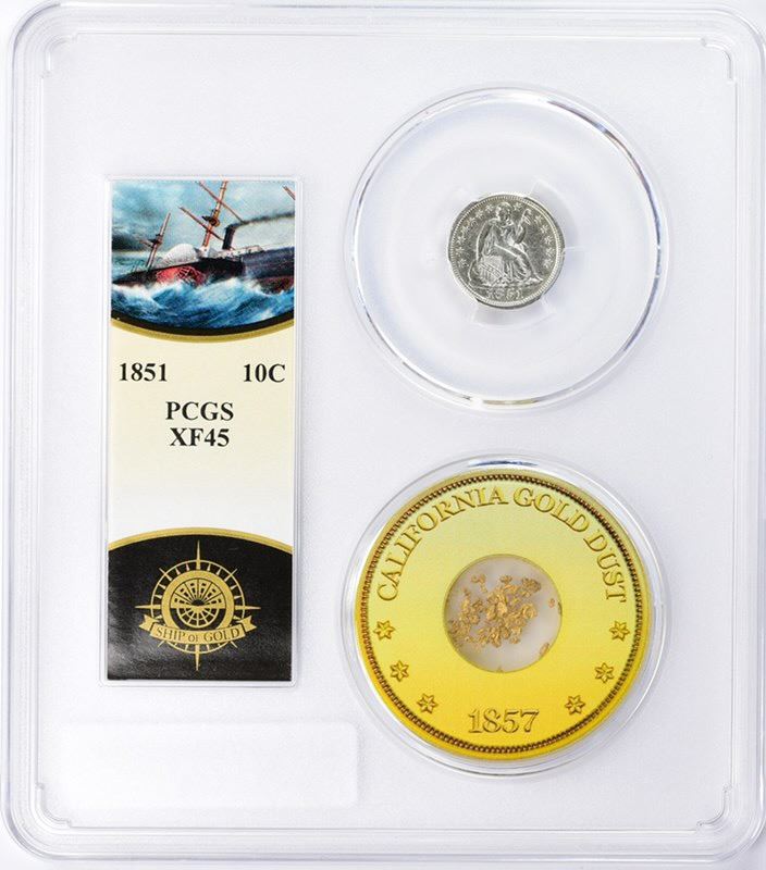1851 Seated Liberty Dime PCGS XF-45 From The S.S. Central America With Gold Pinch