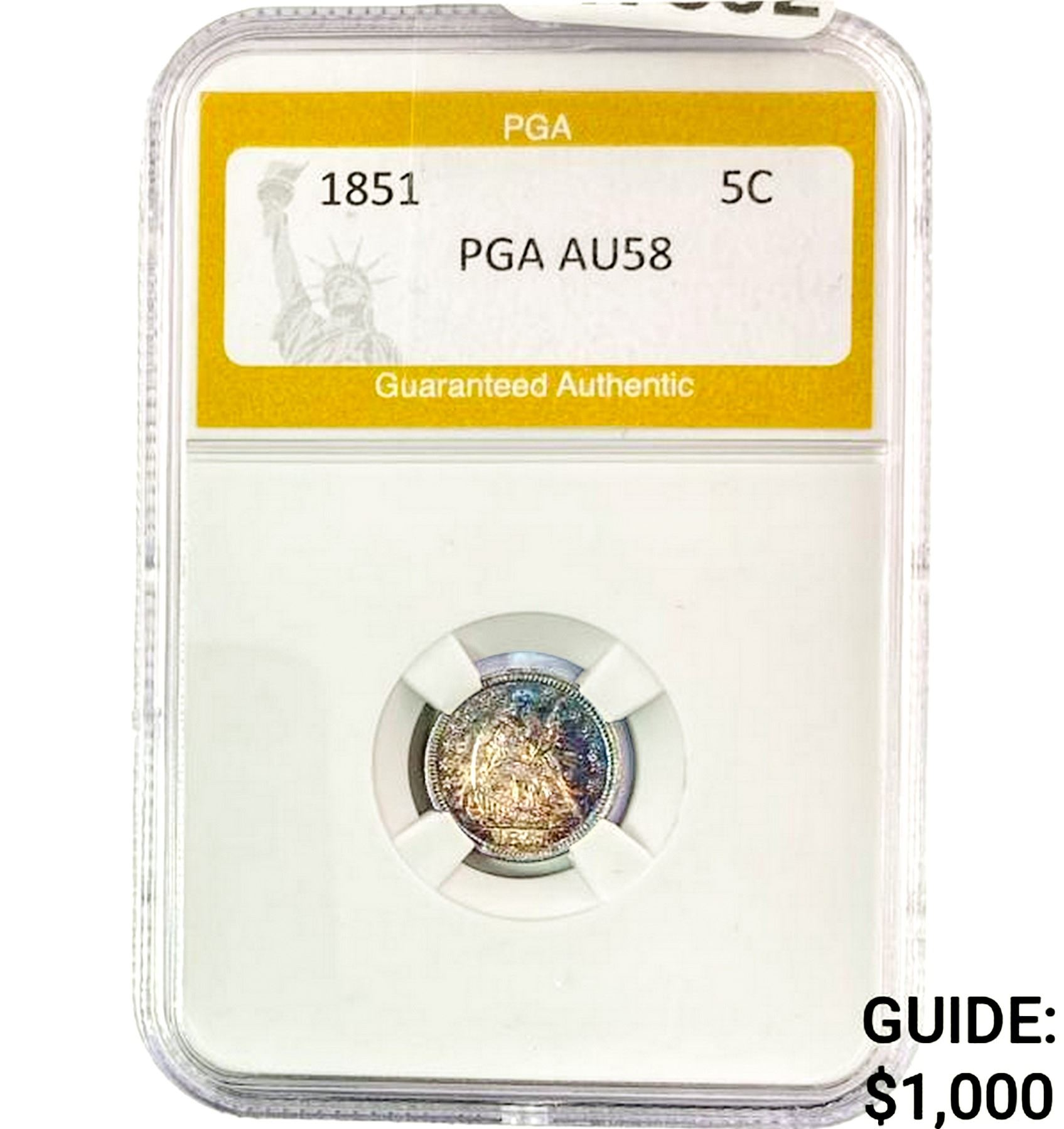 l. All non-certified coins and currency are guaranteed genuine, but are not guaranteed as to grade, since grading is a matter of opinion, an art and not a science, and therefore the description rendered by GSA or any third-party grading service may not agree with the opinion of others (including trained experts), and the same expert may not grade the same item with the same grade at two different times. GSA may, but is not obligated to, express an opinion as to non-certified numismatic items, in GSA’s opinion, or by its employees’ experience and the current interpretation of the American Numismatic Association’s standards as of the date the catalog was prepared. There is no guarantee or warranty expressed or implied that the grading opinions utilized by GSA, if any, will meet the standards of any grading service at any time in the future.