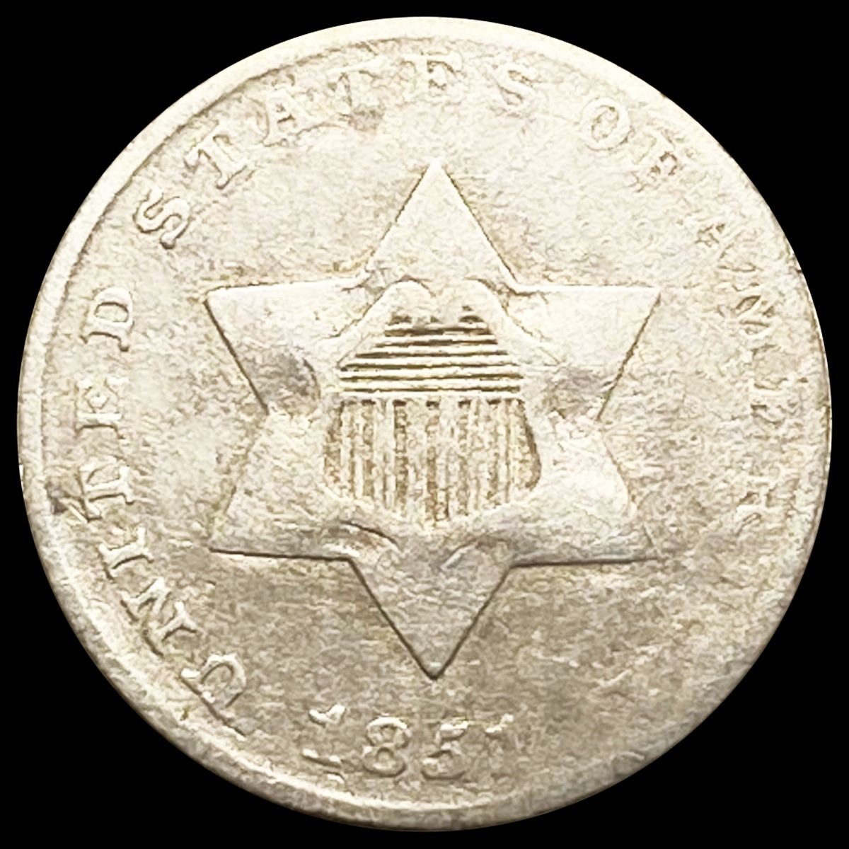 1851 Silver Three Cent ABOUT UNCIRCULATED