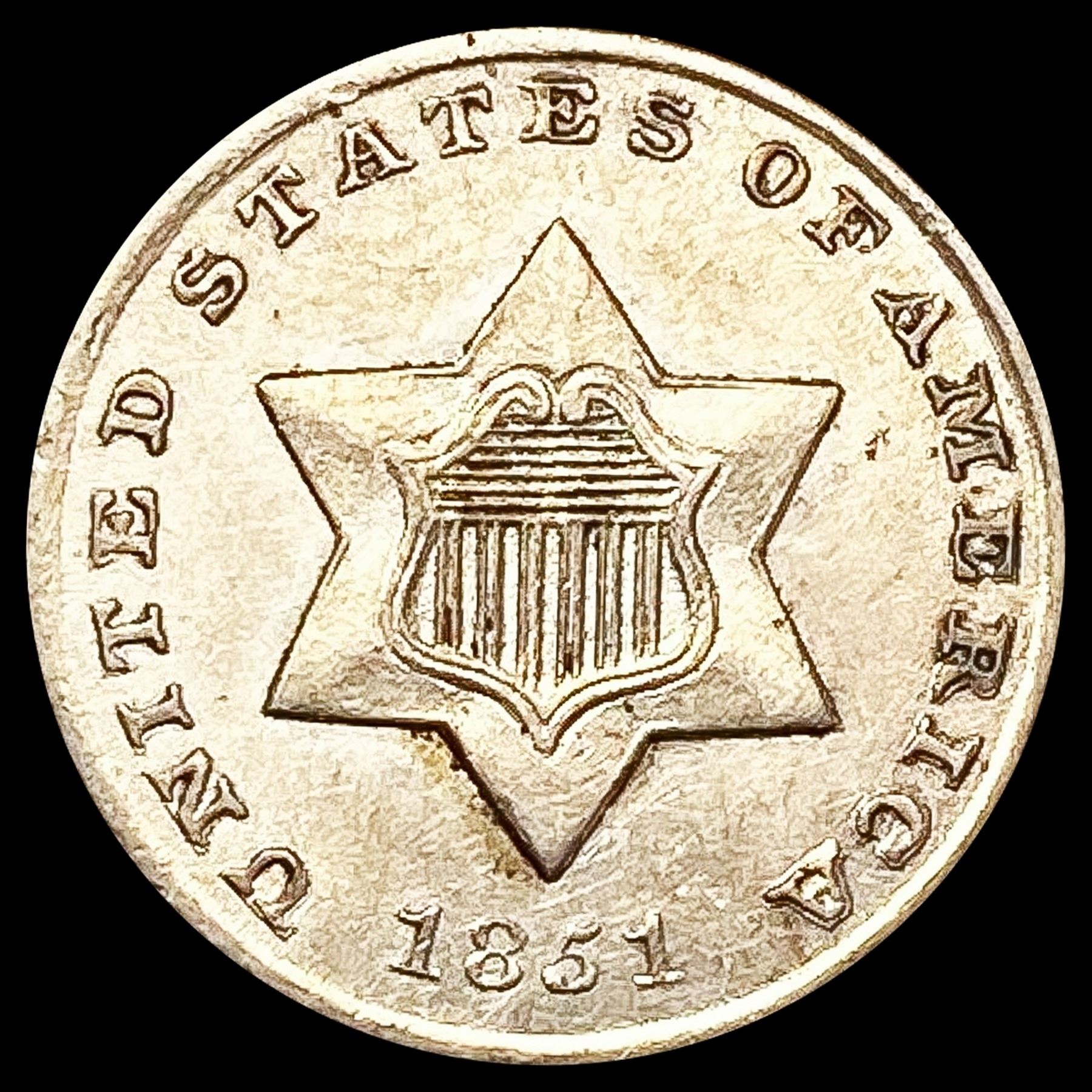 1851 Silver Three Cent CLOSELY UNCIRCULATED