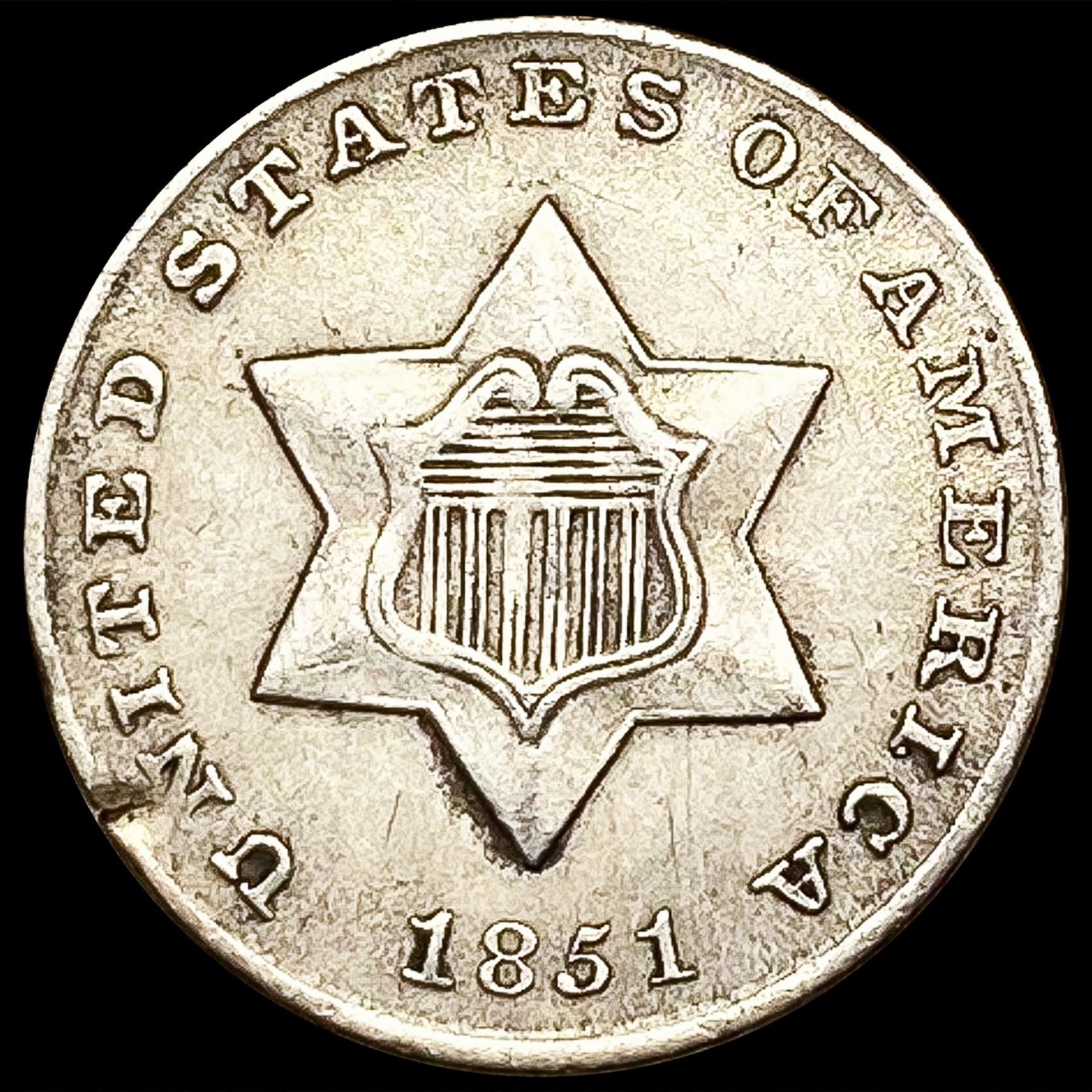 1851 Silver Three Cent CLOSELY UNCIRCULATED