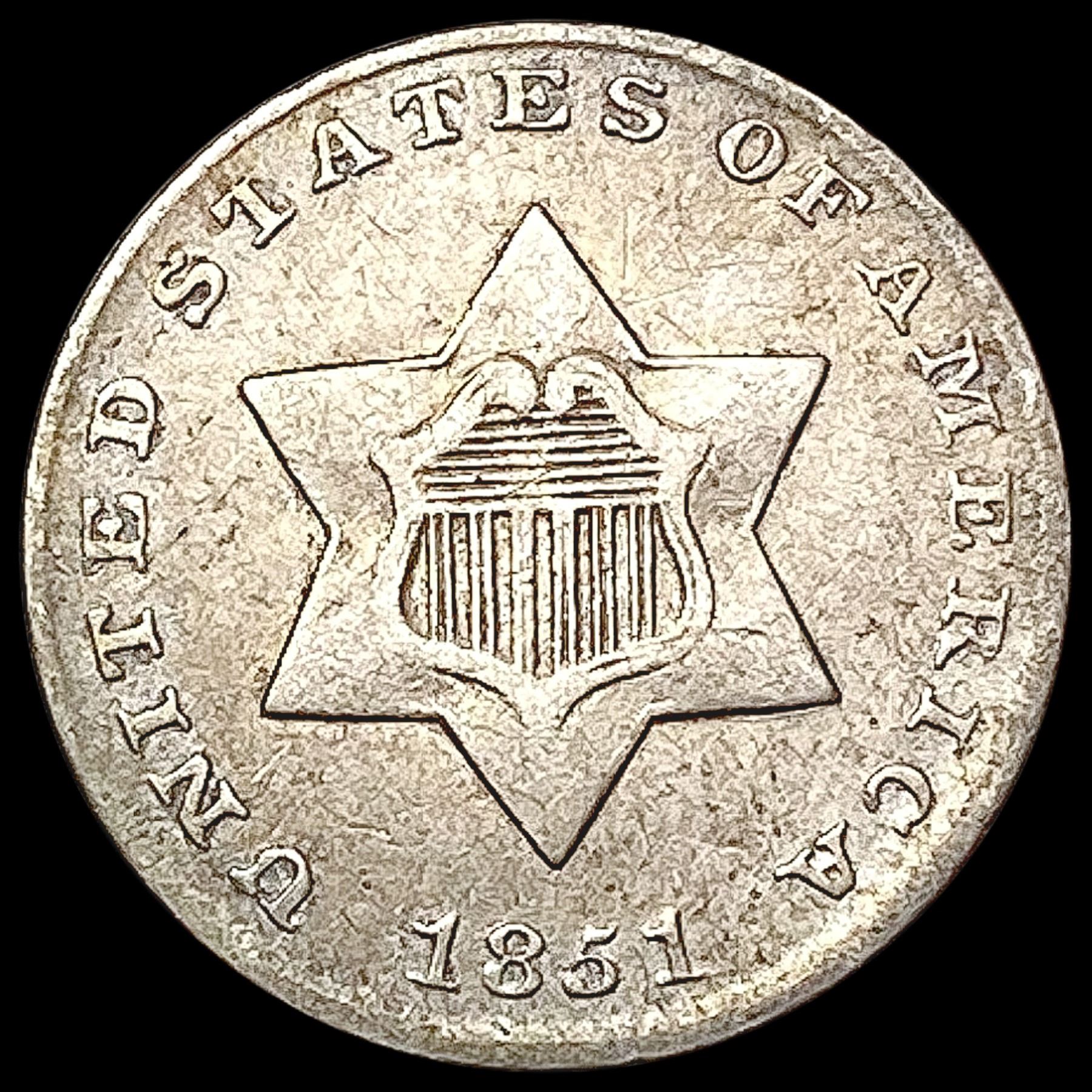 1851 Silver Three Cent CLOSELY UNCIRCULATED