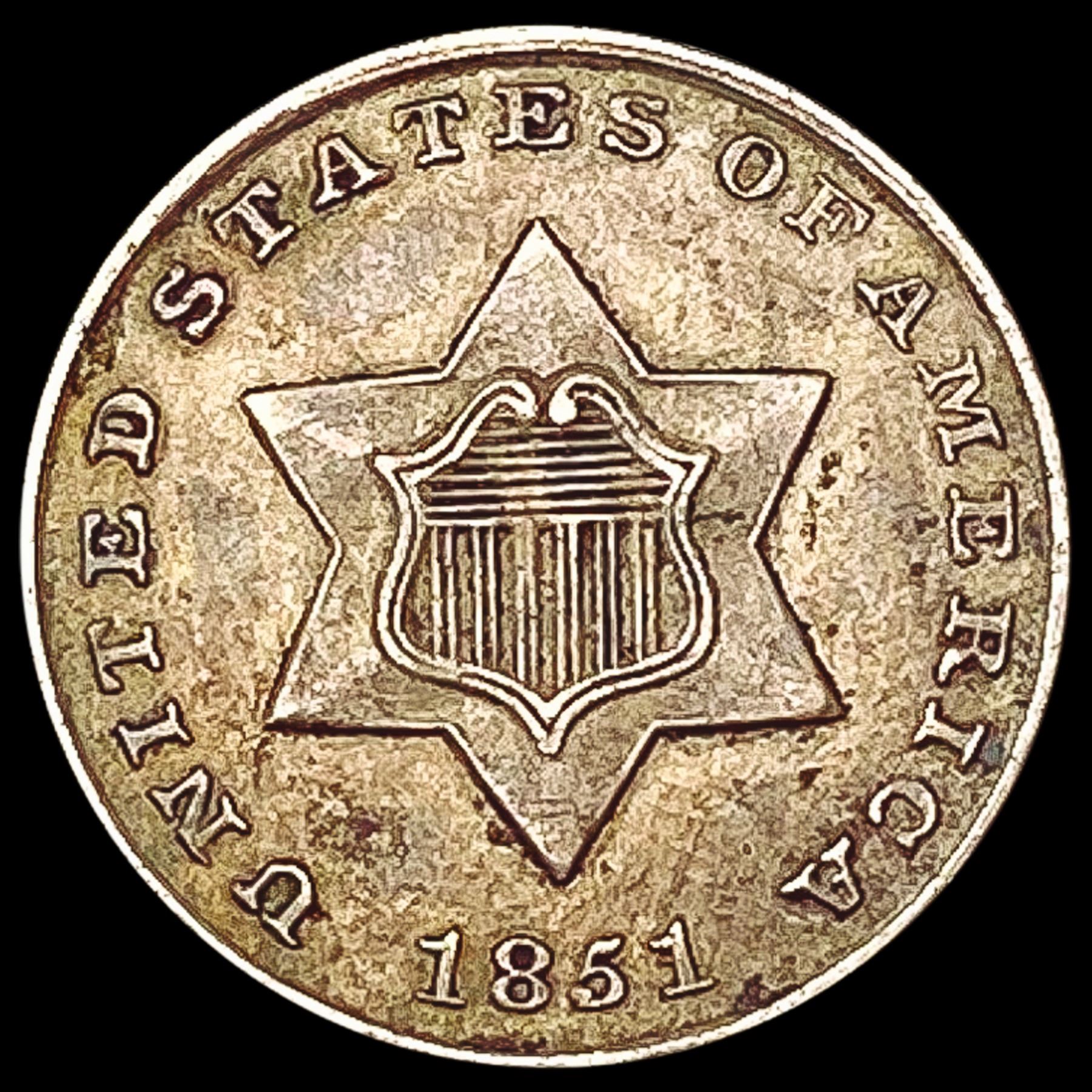 1851 Silver Three Cent CLOSELY UNCIRCULATED