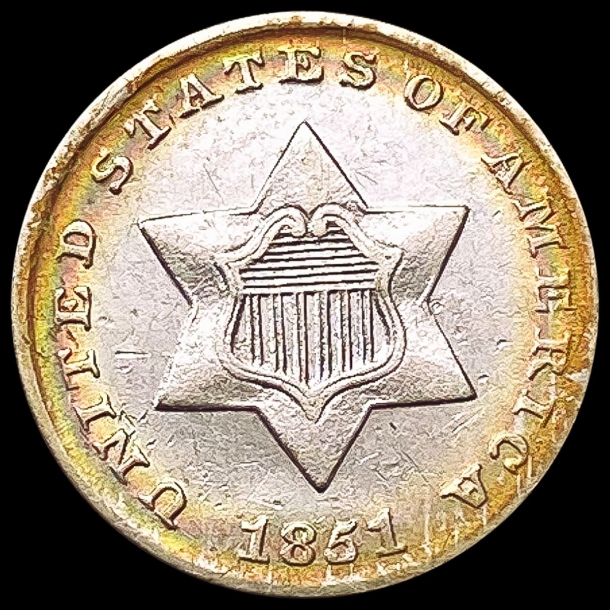 1851 Silver Three Cent CLOSELY UNCIRCULATED