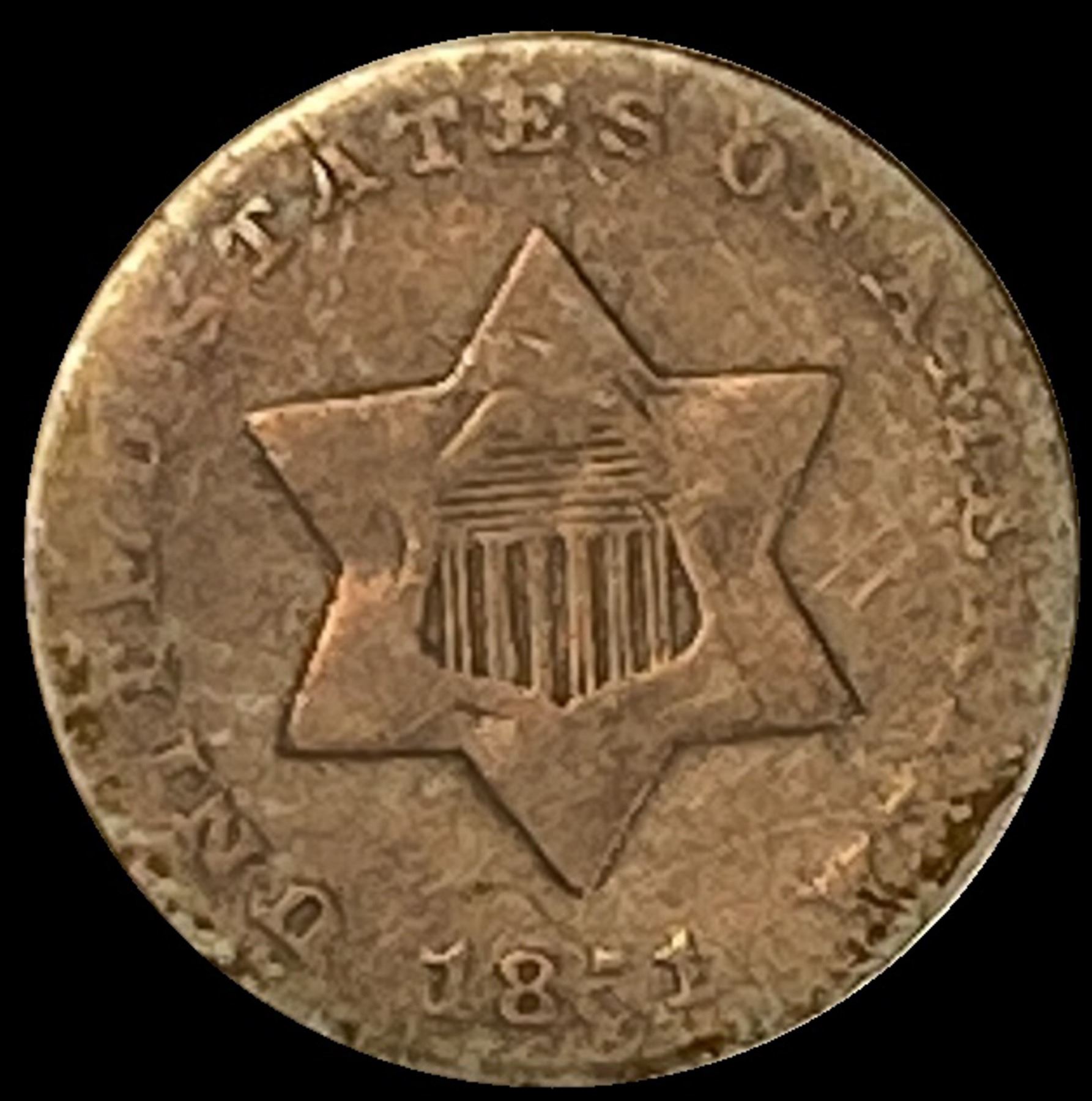 1851 Silver Three Cent LIGHTLY CIRCULATED