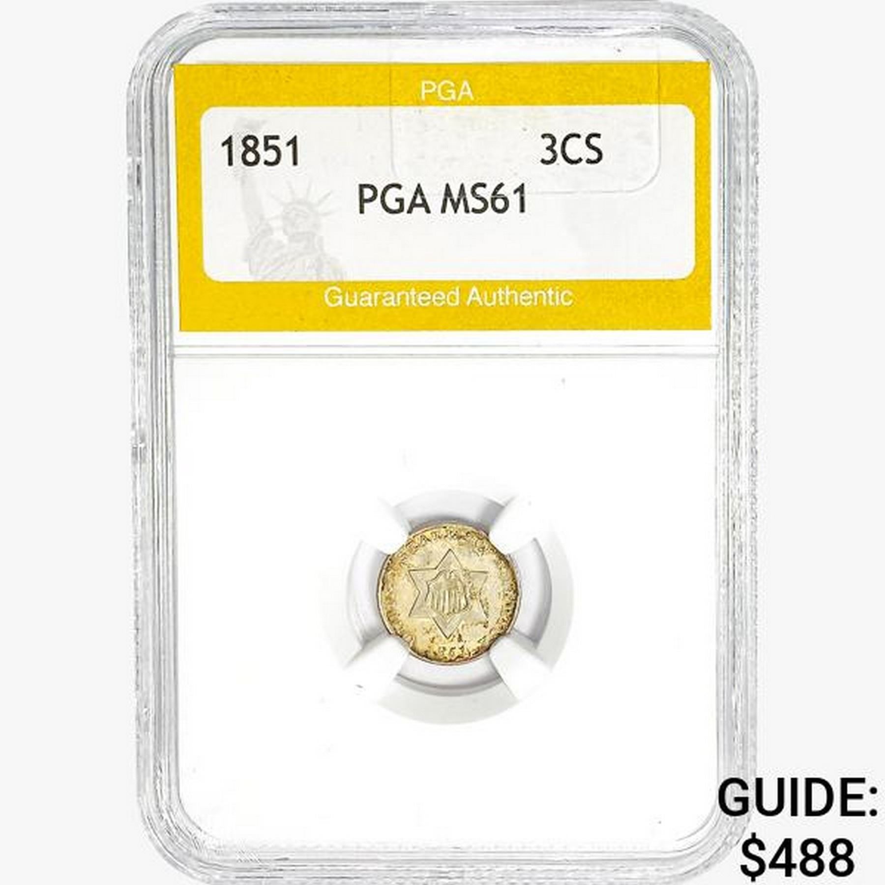 1851 Silver Three Cent PGA MS61