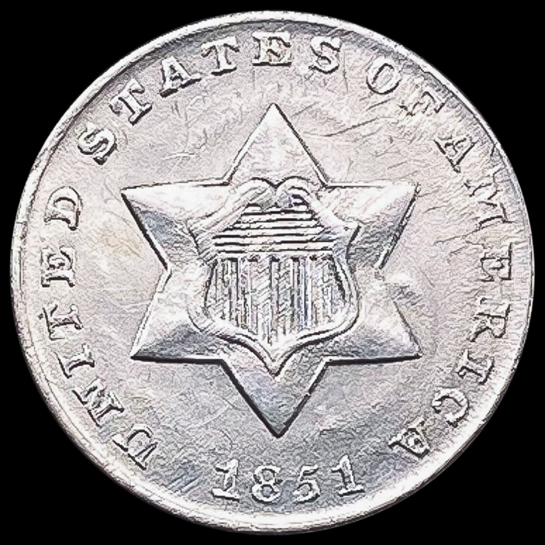 1851 Silver Three-Cent Piece CLOSELY UNCIRCULATED