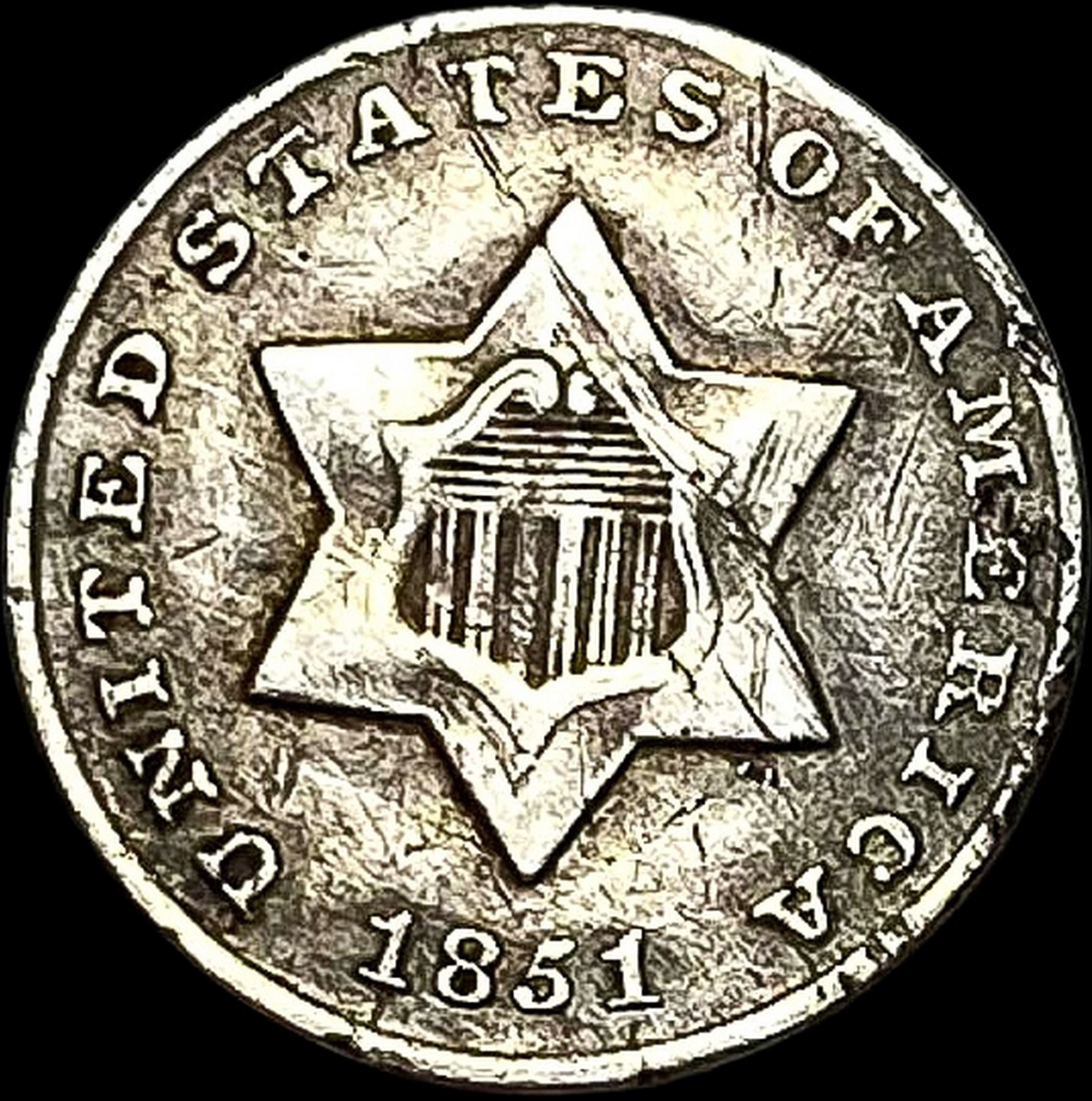 1851 Silver Three-Cent Piece LIGHTLY CIRCULATED
