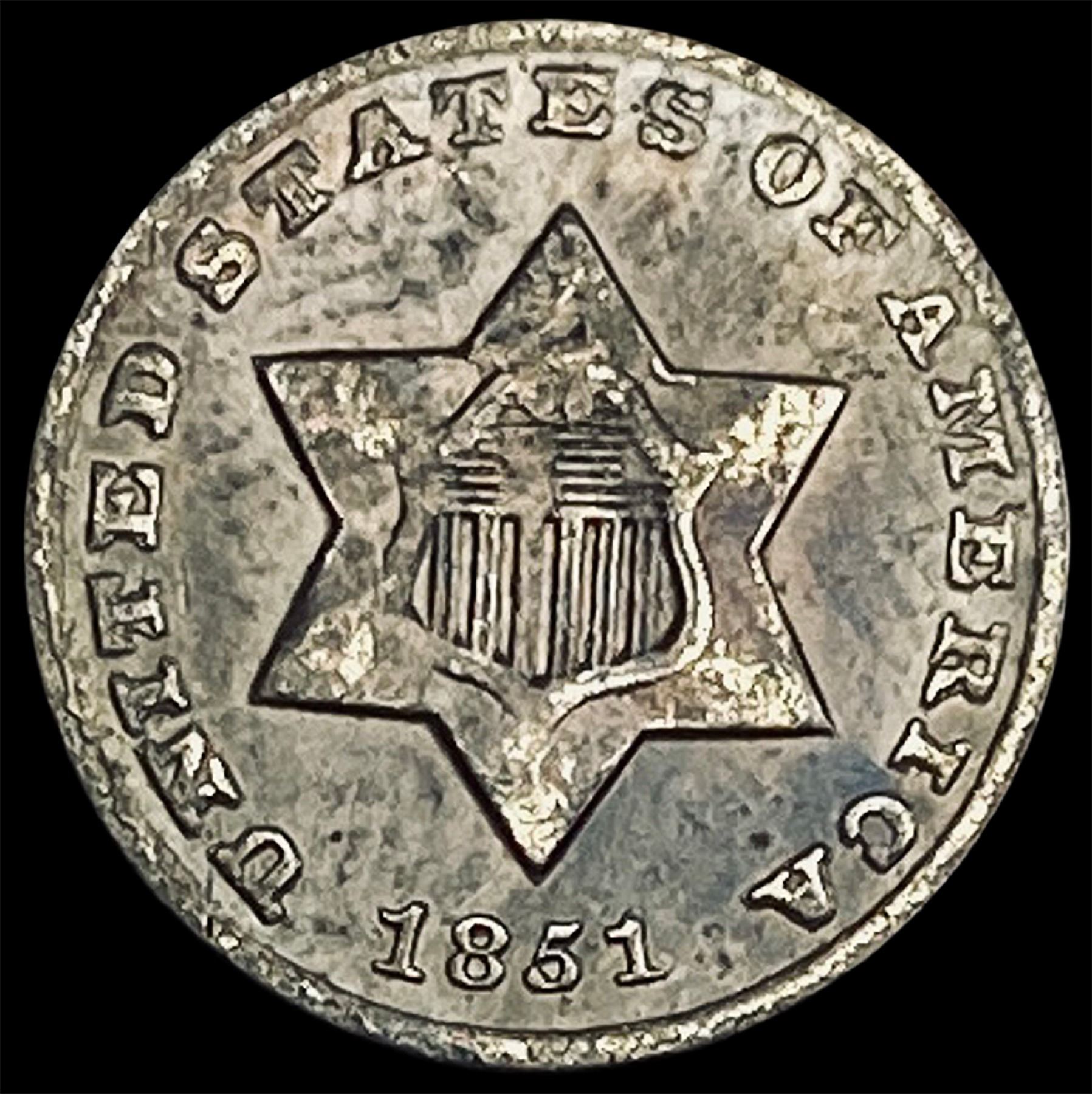 1851 Silver Three-Cent Piece NEARLY UNCIRCULATED