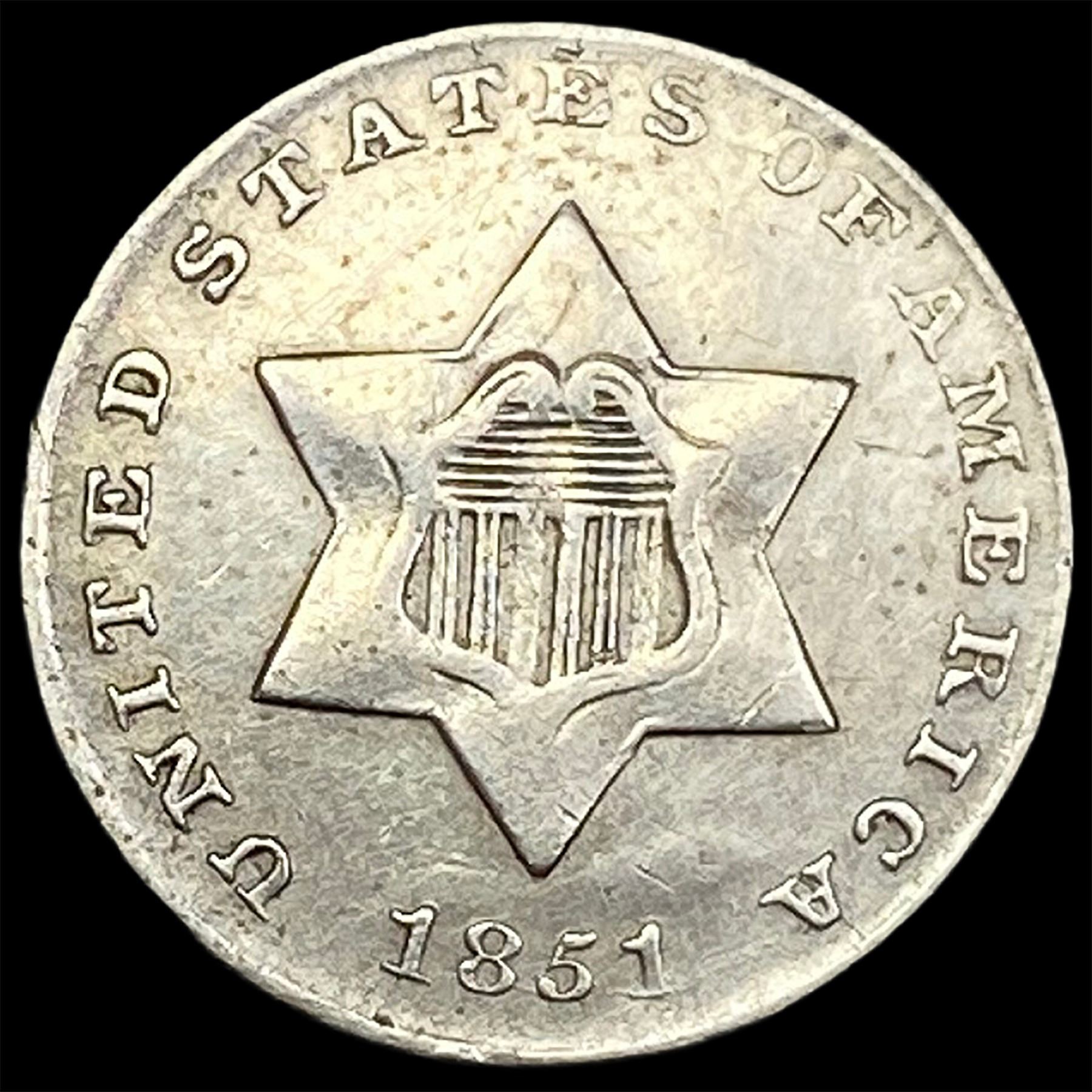 1851 Silver Three-Cent Piece NEARLY UNCIRCULATED