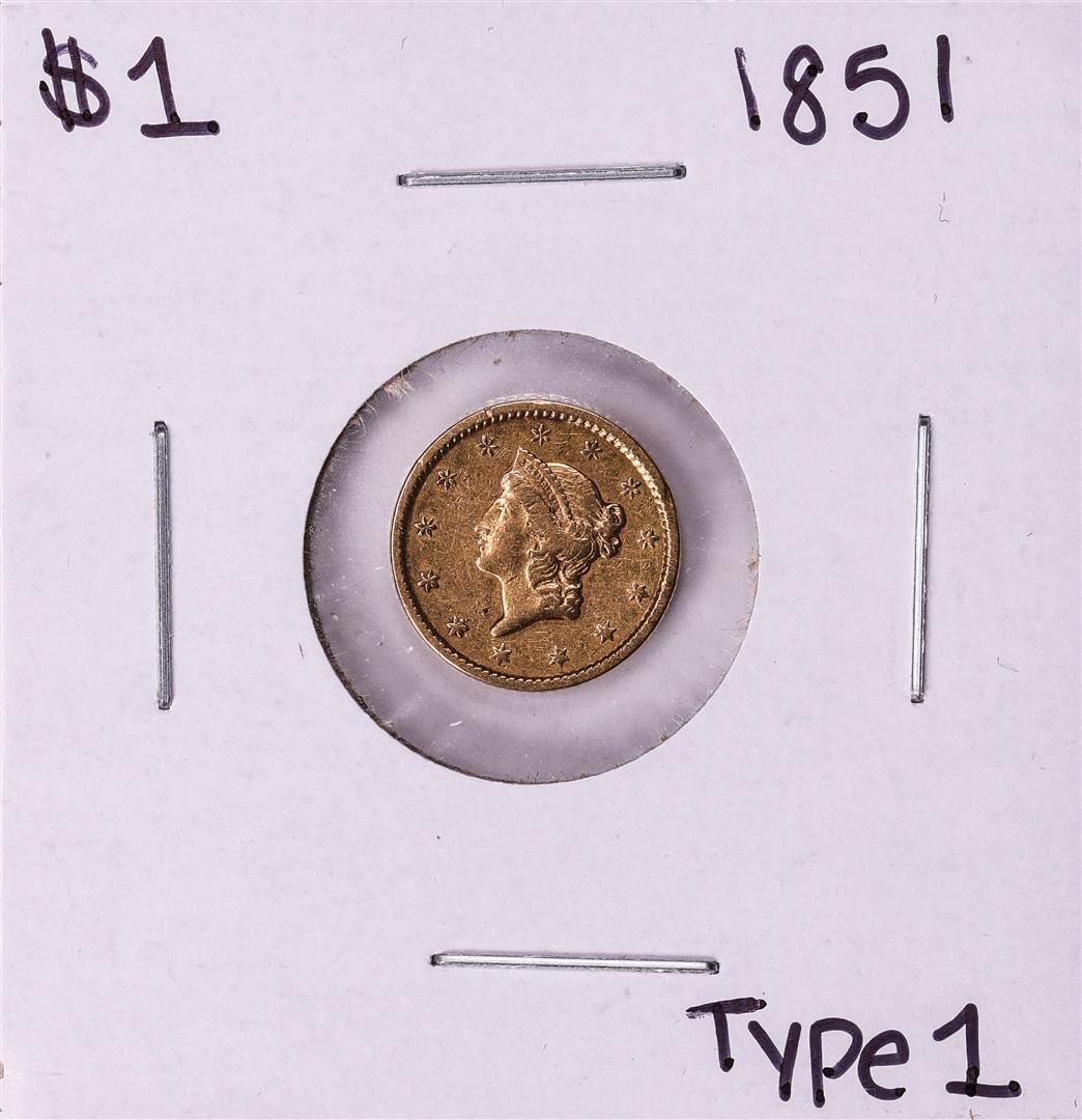 One 1851 Type 1 $1 Liberty Head Gold Dollar Coin.