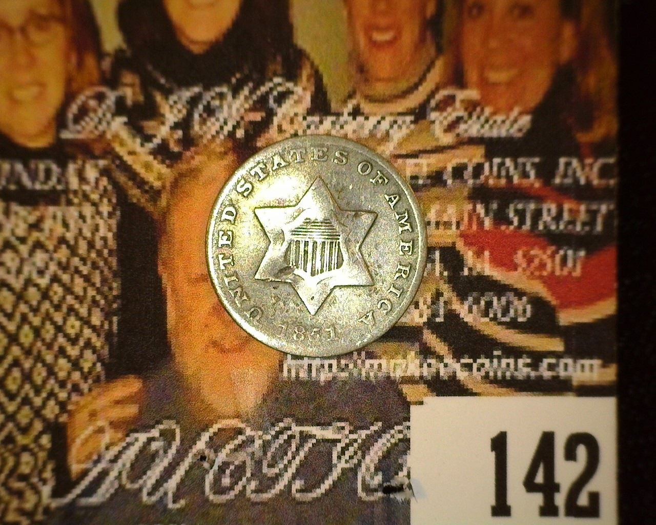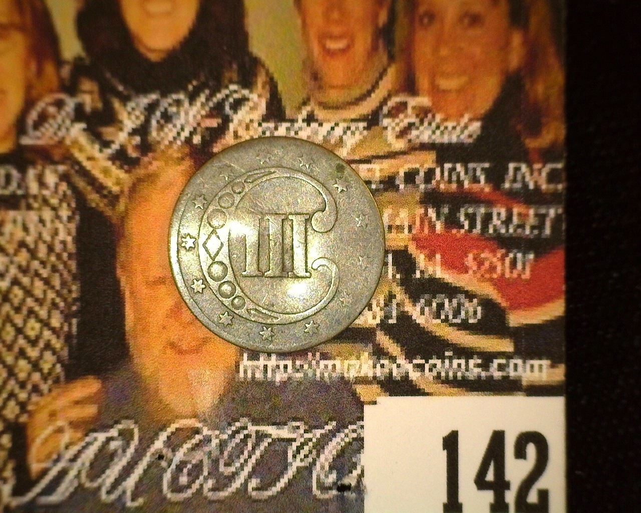 1851 U.S. Three Cent Silver, Fine, Bent.