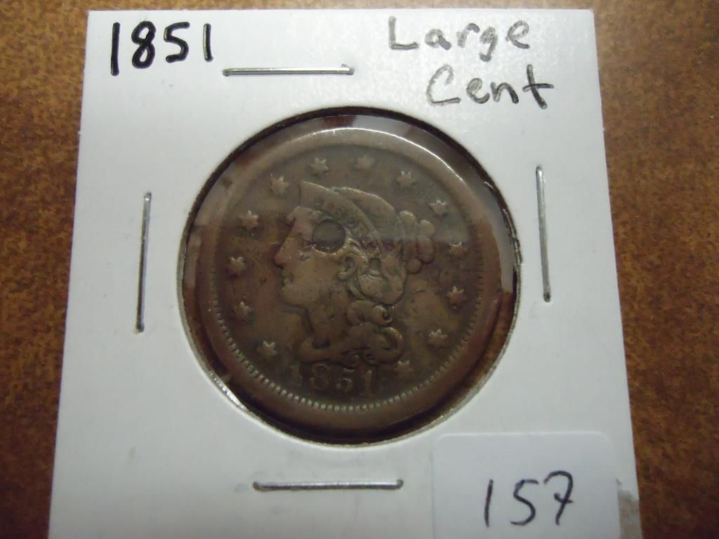 1851 US LARGE CENT WITH PUNCH MARK (AS SHOWN)