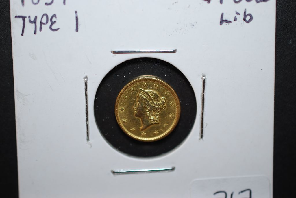 1851 US Liberty $1 Gold Coin Type I; EST. $150-200