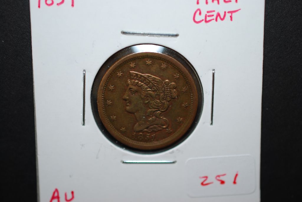 1851 US Liberty Half Cent; AU; EST. $70-90