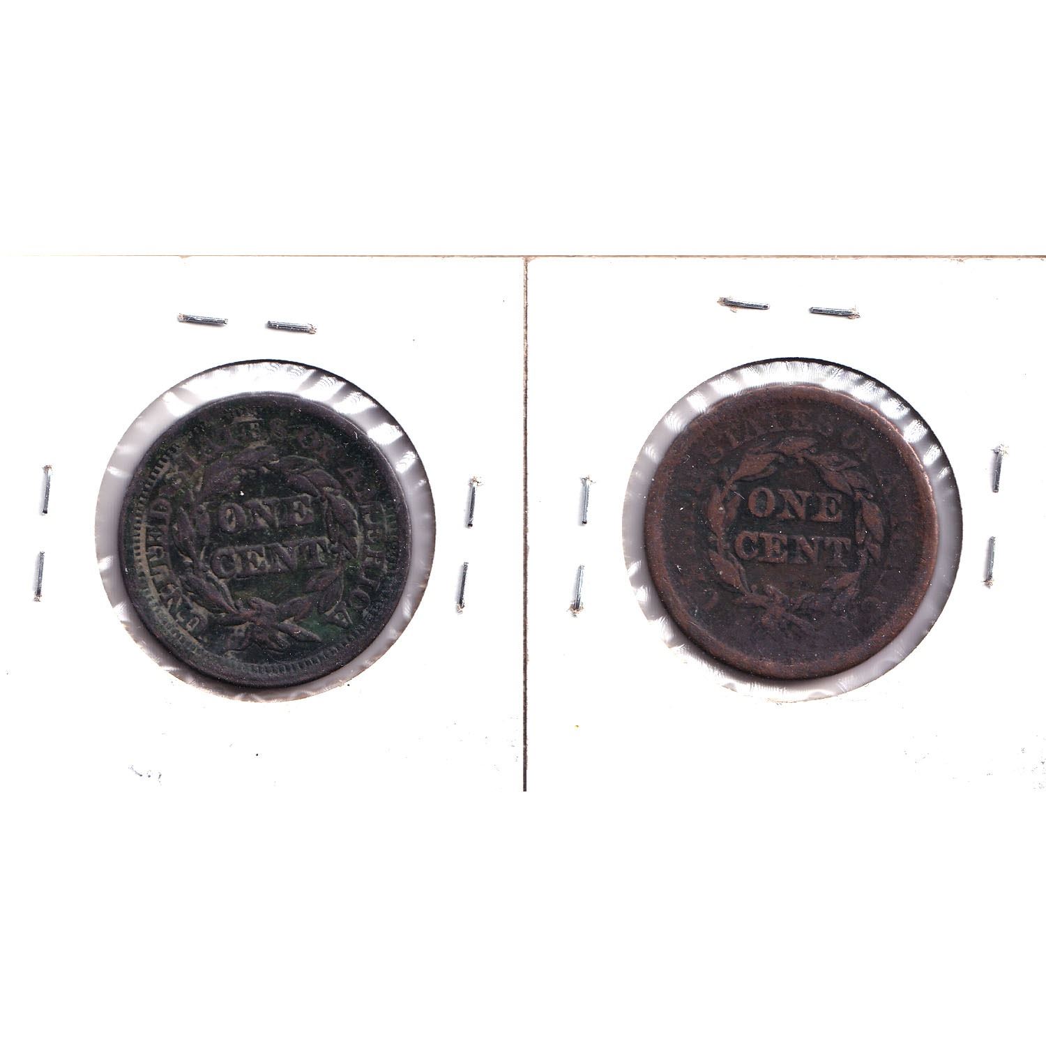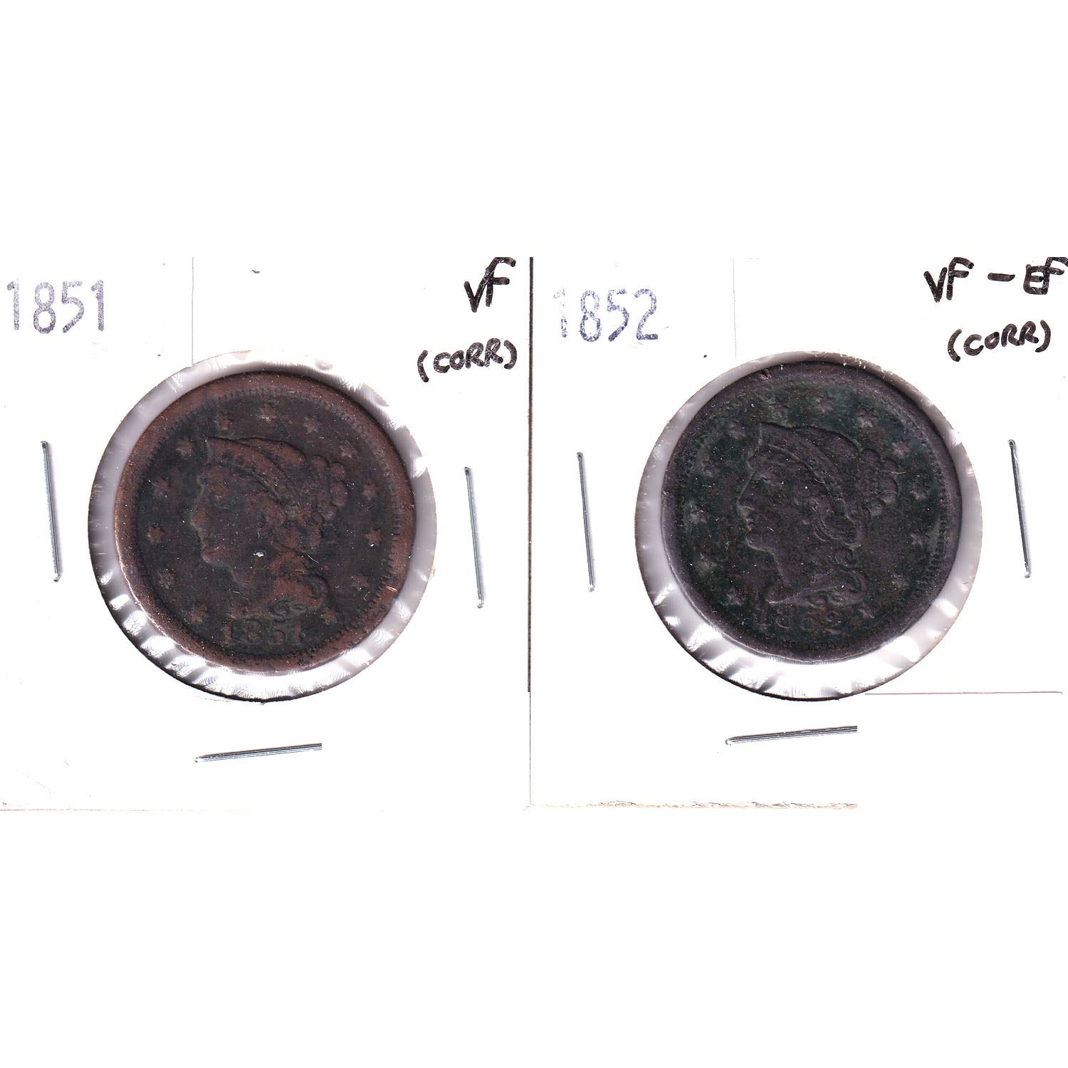1851 USA 1-cent VF (Corrosion) & 1852 USA 1-cent VF-EF (Corrosion). 2pcs