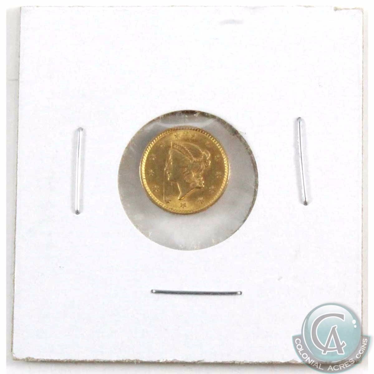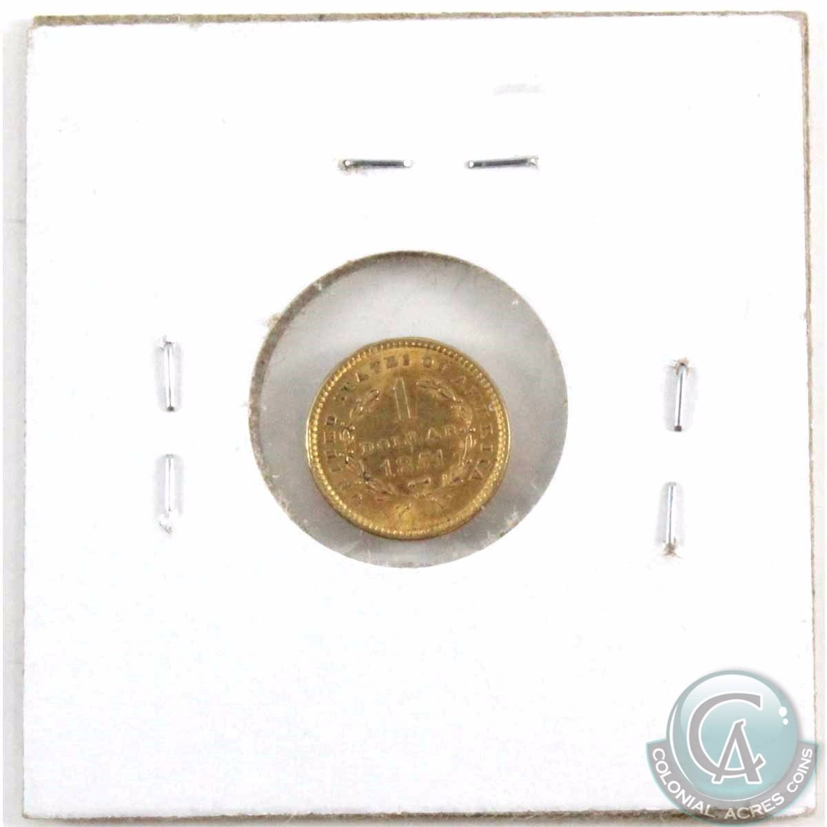 1851 United states $1 Gold coin. This coin weighs 1.672 grams and contains 0.0484 oz of pure gold.