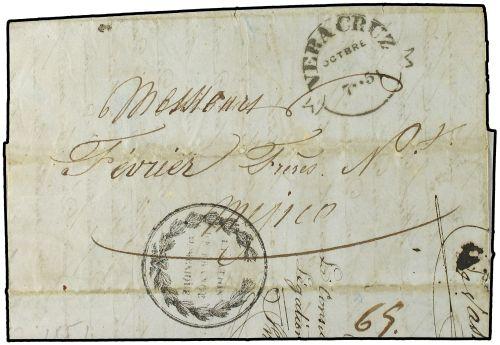 1851 VERACRUZ a MEXICO. Carta con sello y lacres de la LEGATION DE FRANCE EN MEXICO enviando un reconocimiento de firma de un ciudadano francés.