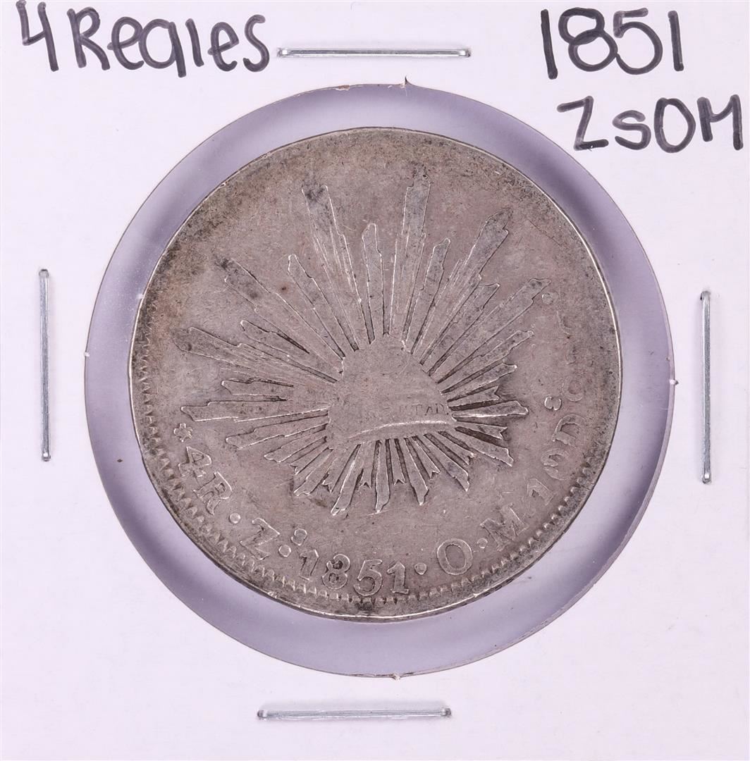 One 1851 ZsOM Mexico 4 Reales Silver Coin.