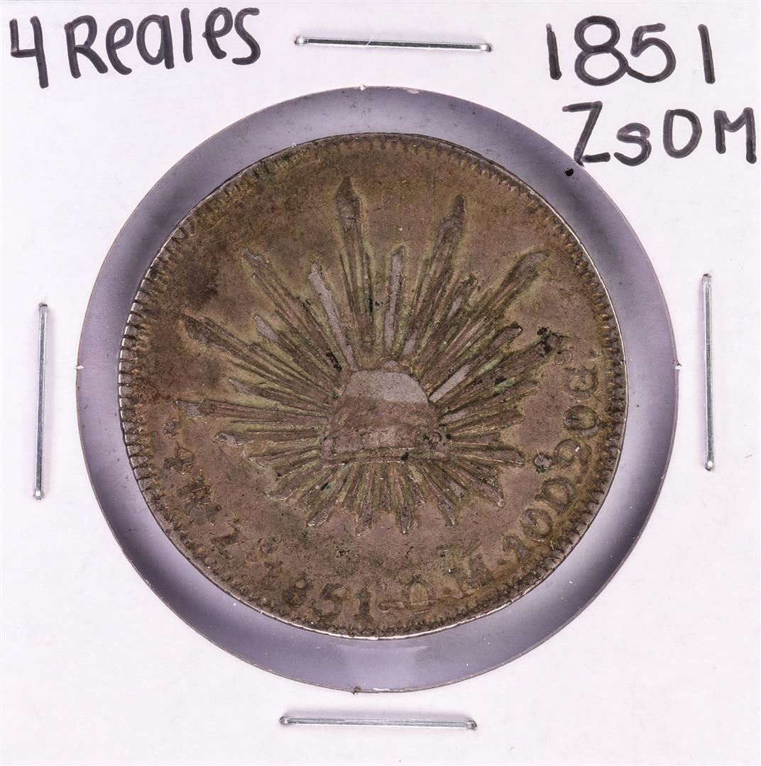 One 1851 ZsOM Mexico 4 Reales Silver Coin.