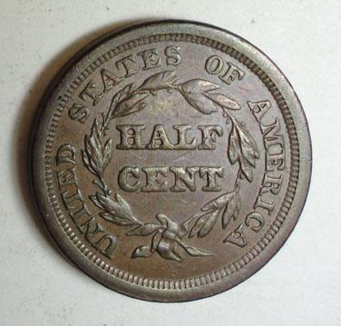 1851 half cent nice color AU