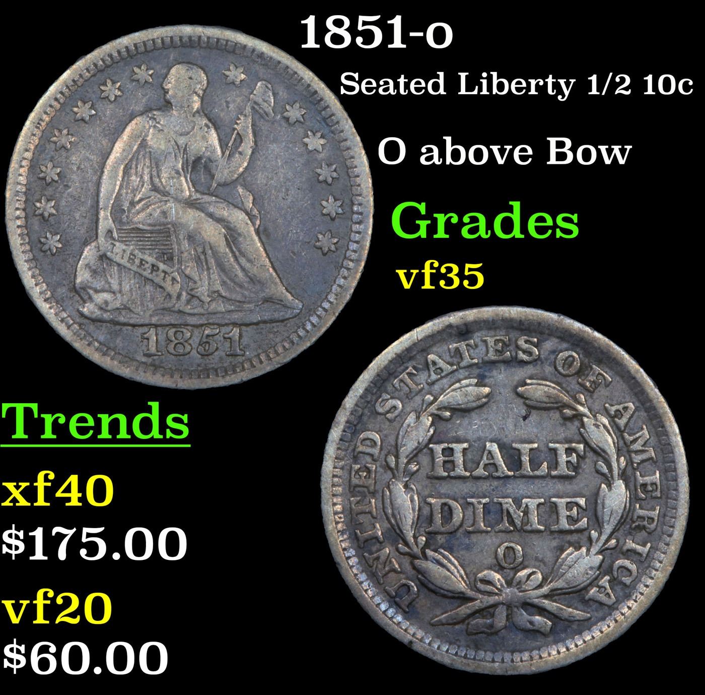 1851-o Seated Liberty Half Dime 1/2 10c Grades vf++.