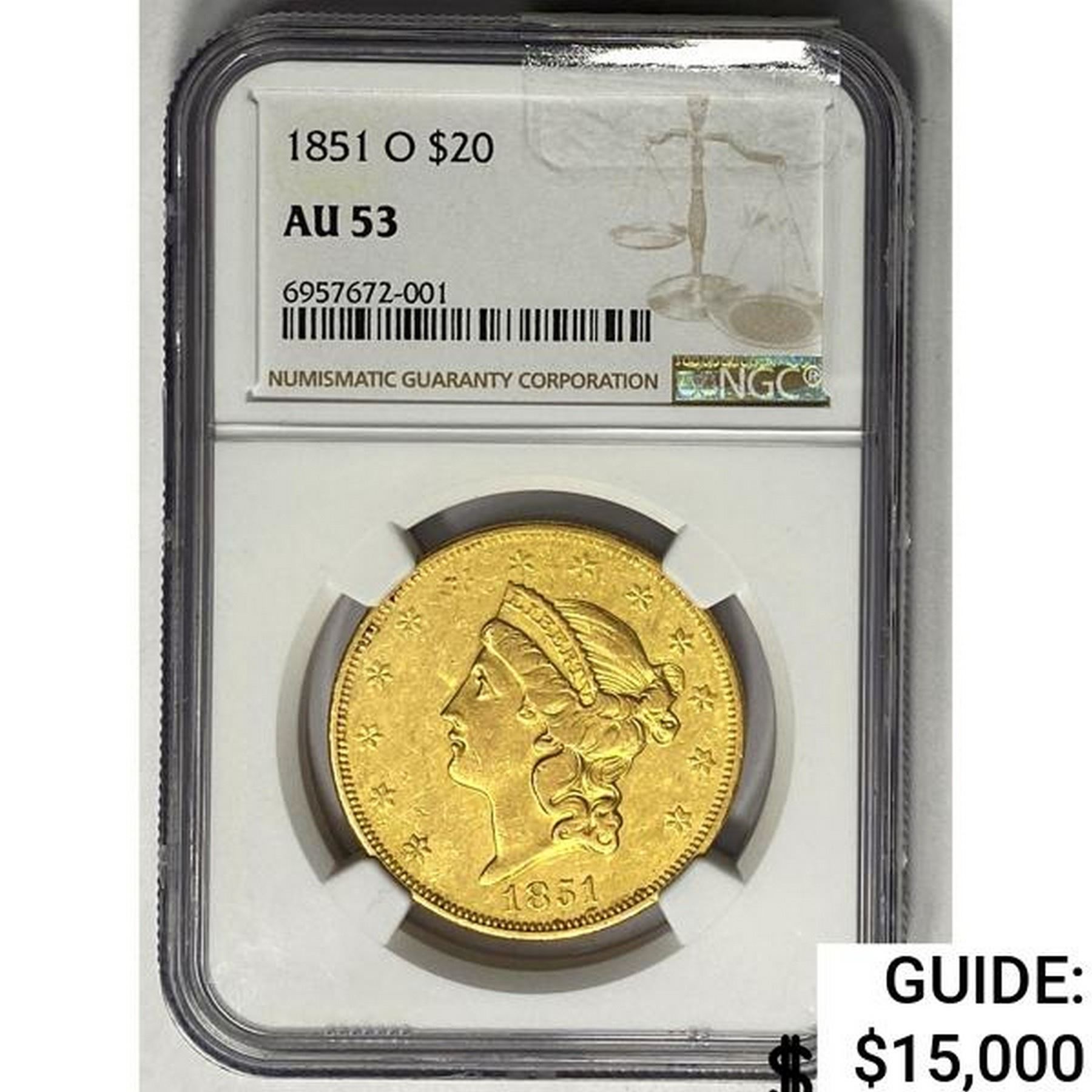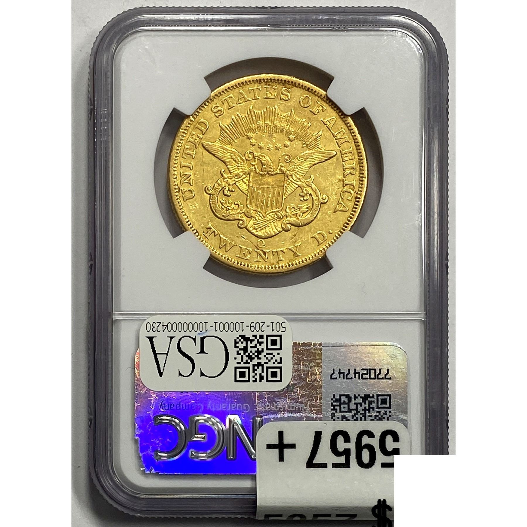 1851O $20 Gold Double Eagle NGC AU53