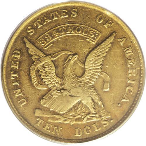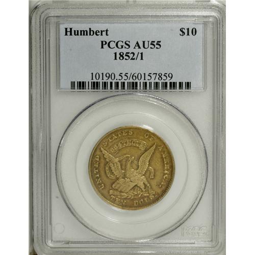 1852/1 $10 Humbert Ten Dollar AU55 PCGS. K-8, High R.