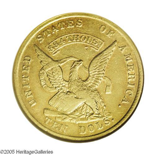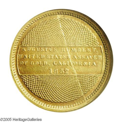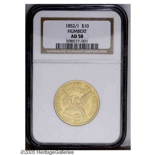 1852/1 $10 Humbert Ten Dollar AU58 NGC. K-8, High R.5. 1852/1[$10] Humbert Ten Dollar AU58 NGC.