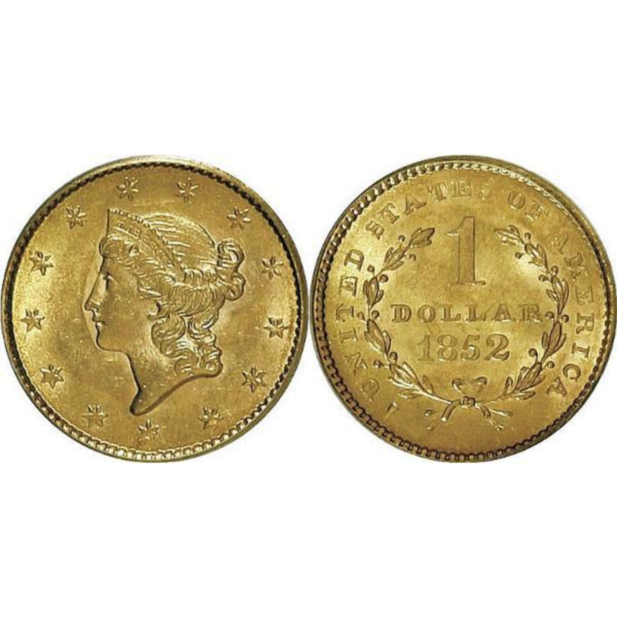 1852 $1 Gold Liberty Type 1