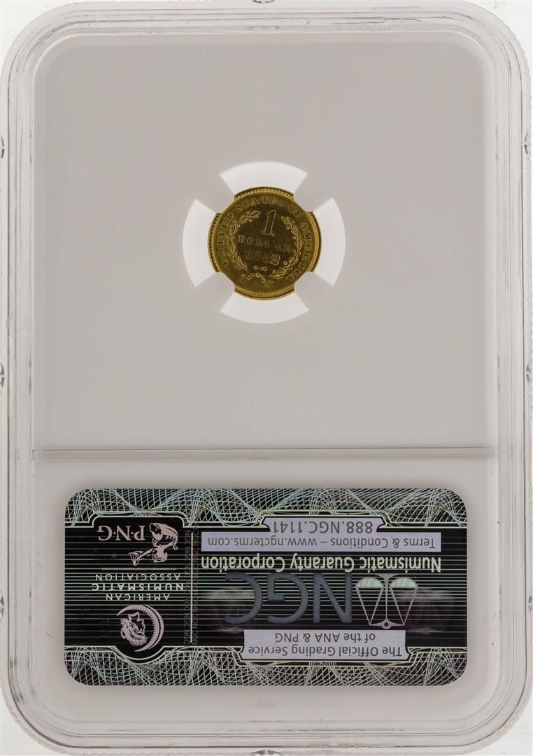 One 1852 $1 Liberty Head Gold Coin NGC MS62. NGC Certified.