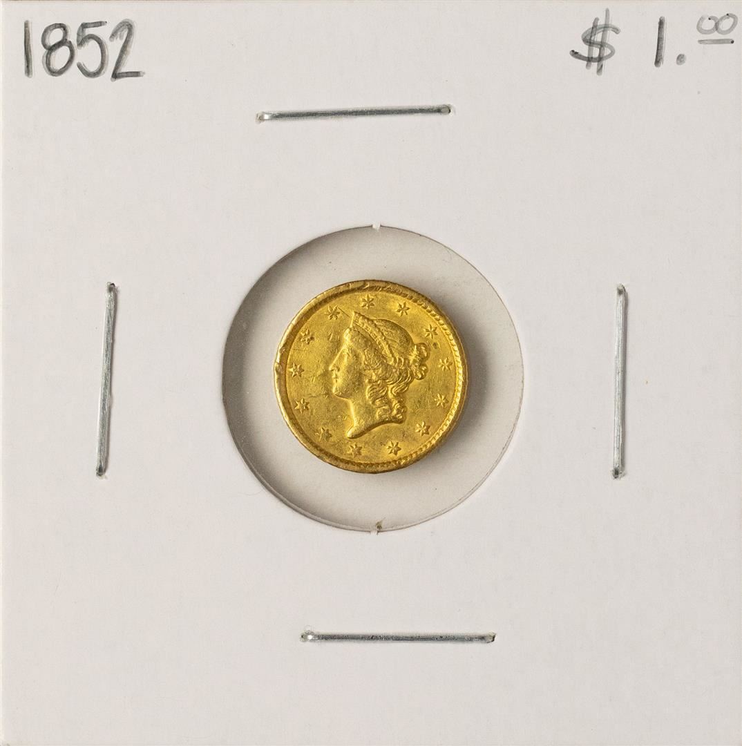 One 1852 $1 Liberty Head Gold Dollar Coin.