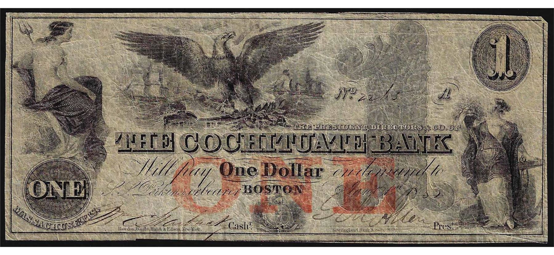 One 1852 $1 The Cochituate Bank Obsolete Note.
