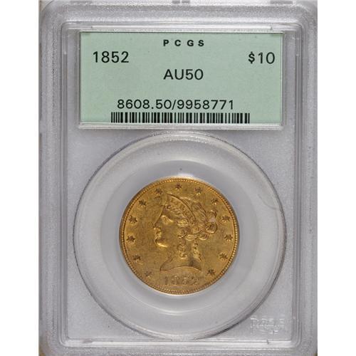 1852 $10 AU50 PCGS. PCGS Population (48/76). NGC C