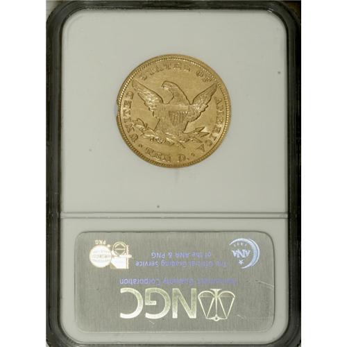 1852 $10 AU55 NGC. The pale wheat-gold fields retain m