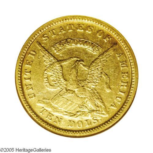 1852 $10 Assay Office Ten Dollar AU58 NGC. K-12a, R.5. 1852[$10] Assay Office Ten Dollar AU58 NGC.