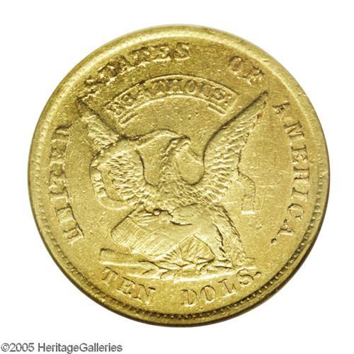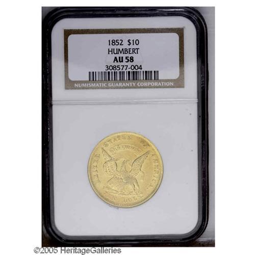 1852 $10 Humbert Ten Dollar AU58 NGC. K-10, R.5. Moder 1852[$10] Humbert Ten Dollar AU58 NGC.
