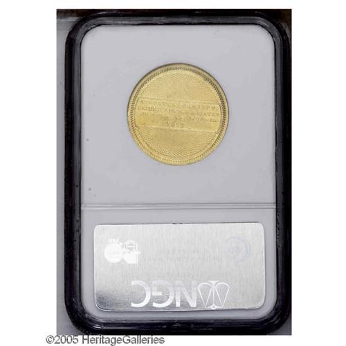 <B>1852<$10> Humbert Ten Dollar AU58 NGC.</B></I> K-10, R.5. Moderate to heavy abrasions, with familiar die cracks along the base of UNITED and other portions of the legend. Tinges of attractive reddish patina can be found in the recesses. One of the last gold issues under the Humbert name; Moffat & Co. was reorganized later in 1852 to issue government-blessed gold coins as the United States Assay Office of Gold. Census: 4 in 58, 2 finer (11/05). Listed on page 350 of the 2006 <I>Guide Book.</B></I><BR><I>From The Great Western Collection of Territorial Gold, Part Two.</B></I>