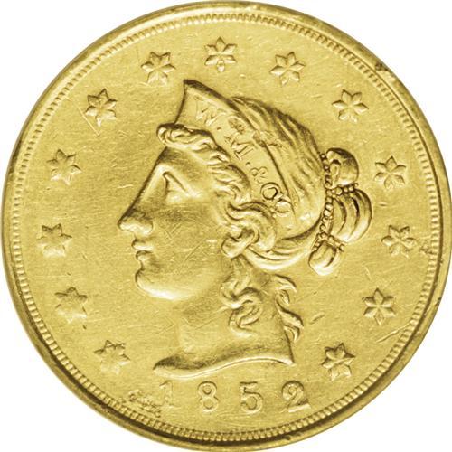 1852 $10 Wass Molitor Ten Dollar, Large Head, Wide Dat