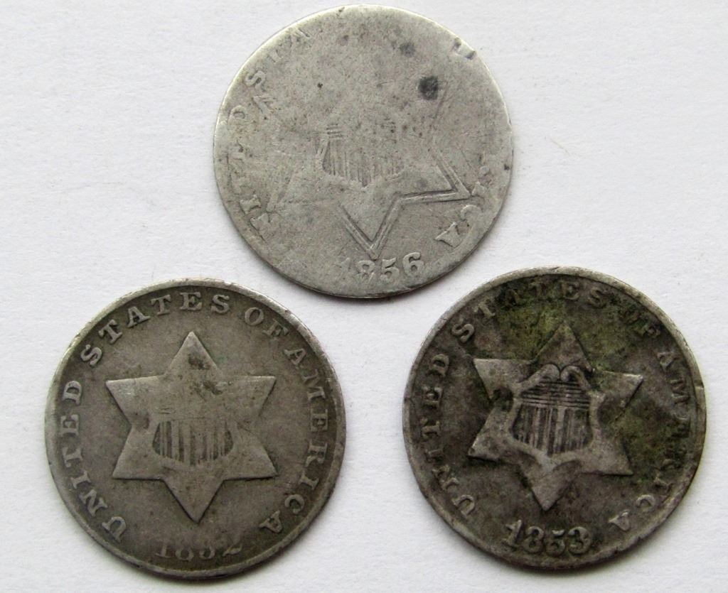 1852, 1856, 1853 THREE CENT SILVERS