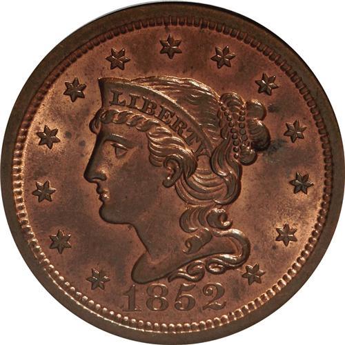 1852 1C MS64 Red and Brown PCGS. Ex: Novmeber 1981, Co