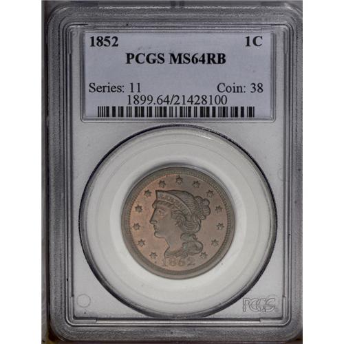 1852 1C MS64 Red and Brown PCGS. N-8, R.2. GDS d.