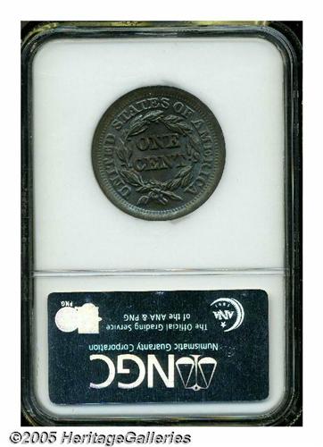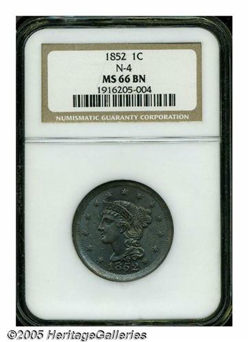 1852 1C MS66 Brown NGC. N-4, R.1. Lovely tan-brow