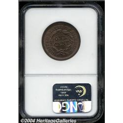 <B>1852<1C> MS66 Brown NGC.</B></I> N-17, R.1. Die State C. A well struck and splendidly preserved premium Gem with shimmering cartwheel luster and lovely blended golden-brown and lilac patina. NGC N-17 Population: 2 in 66 Brown, 1 finer (4/04). <BR><BR><B>Important notice:</B> Heritage usually auctions material at the rate of 200-250 lots per hour. On some occasions eBay Live bid software or the Internet may not be able to keep up with the pace of the auction. We recommend placing a realistic absentee bid now as insurance to avoid disappointment. Occasionally the auctioneer may eliminate or reject an eBay Live bid, and the auctioneer may also reopen a lot after the close of the eBay live bidding (usually because we missed an audience bid), and may reject your bid even if it shows you as the winning bidder. By bidding via eBay Live, you agree that Heritage may award the lot to another bidder at its sole discretion under the circumstances described above or any other reasonable circumstances. Since eBay bids are not shown to us until we open the lot on the floor, we treat those bids just like floor bids. In most cases the floor responds before the eBay bid is presented to us, due to Internet lag time, so for consistency we have made it a policy that floor bids are always considered first over tie eBay live bids. Also please note that all Heritage lots purchased through eBay Live carry a 20% Buyer's Premium. Please make sure you read the Terms and Conditions before you bid.