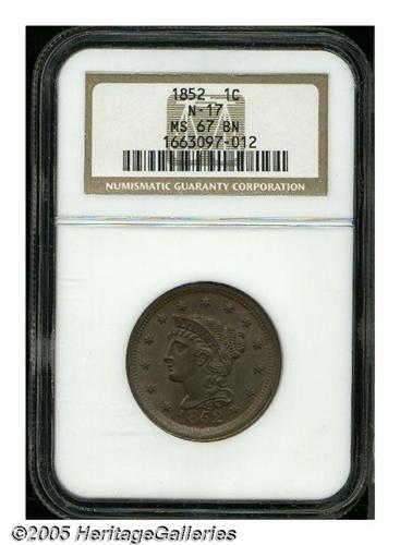 1852 1C MS67 Brown NGC. N-17, R.1. A small die lu