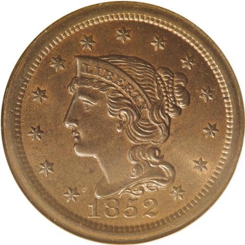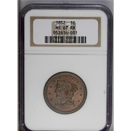 1852 1C MS67 Red and Brown NGC. N-11, R.1. Grellman Di